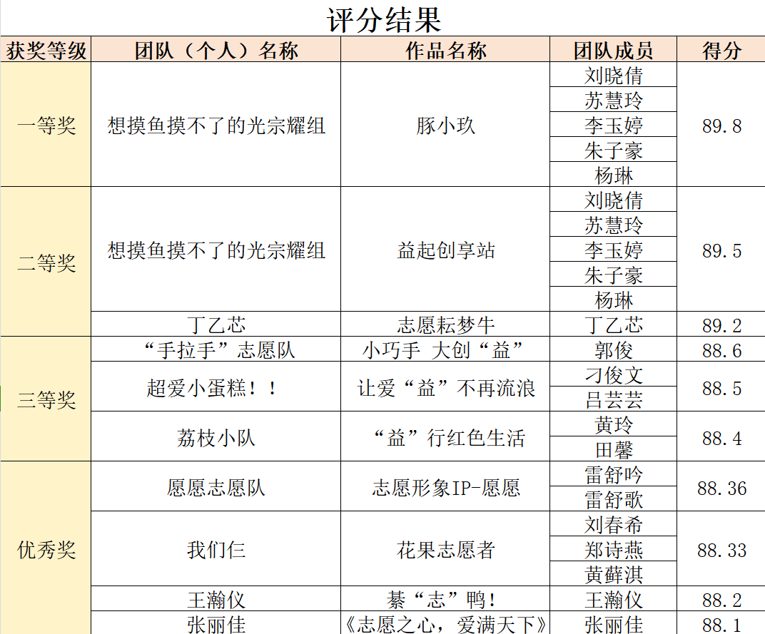同学们提交的创意设计作品,无不展现出同学们对志愿服务理念的深刻理解和独到诠释。经过评审,最终推选出6个优秀项目,成功晋级至创“益”设计师志愿服务文化创意设计大赛的校级竞赛阶段。