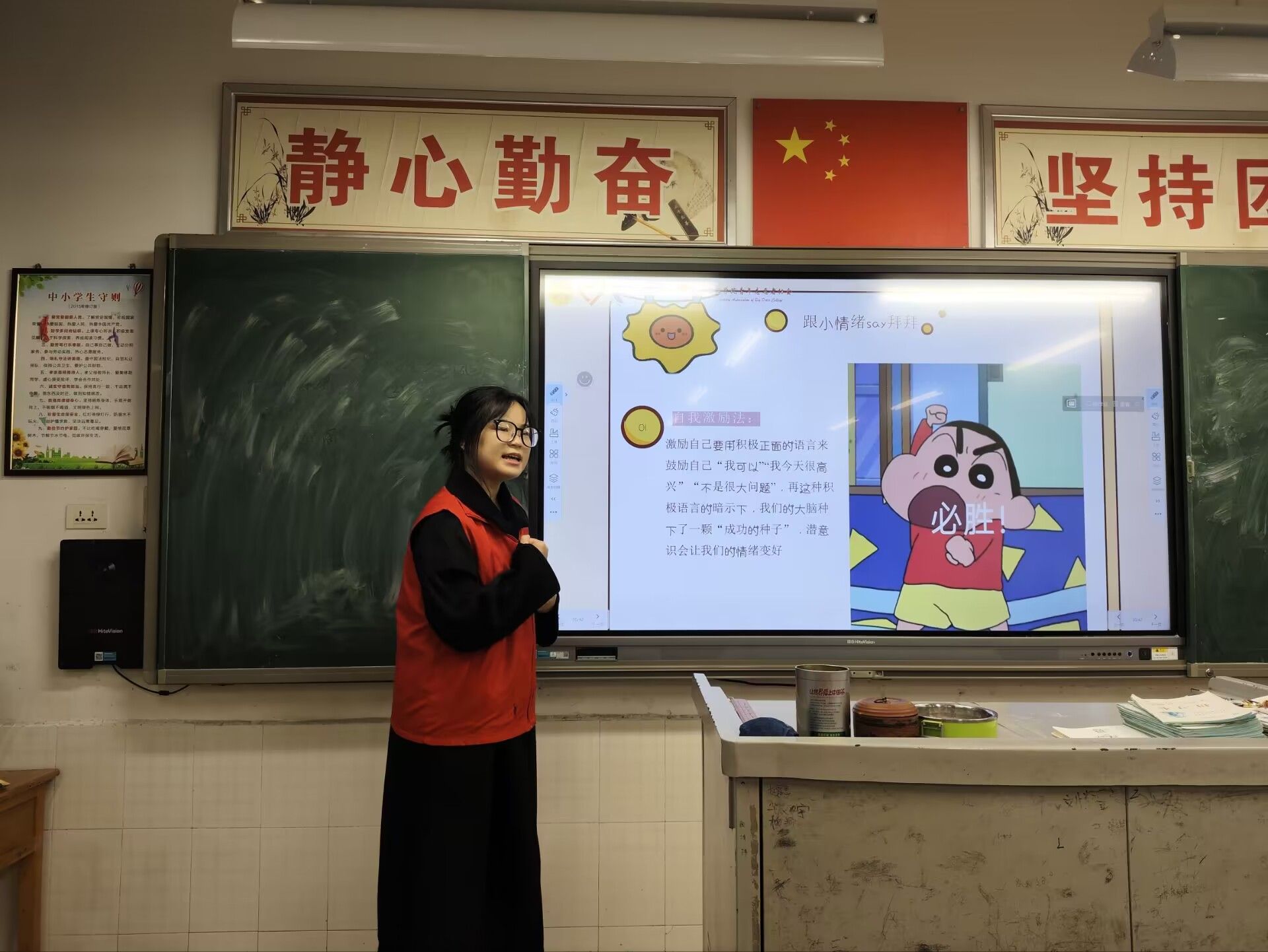 为了促进青少年心理健康,守护青少年成长。2024年11月25日,大数据学院青年志愿者协会携手2023级数据科学与大数据技术7班的志愿者们,步入綦江区登瀛小学,为孩子们带去以心理健康教育为主题的小课堂。此次教学通过丰富多彩的形式,旨在让孩子们学会正确表达自身情感,有效释放内心压力,并懂得在遭遇伤害时如何自我保护。