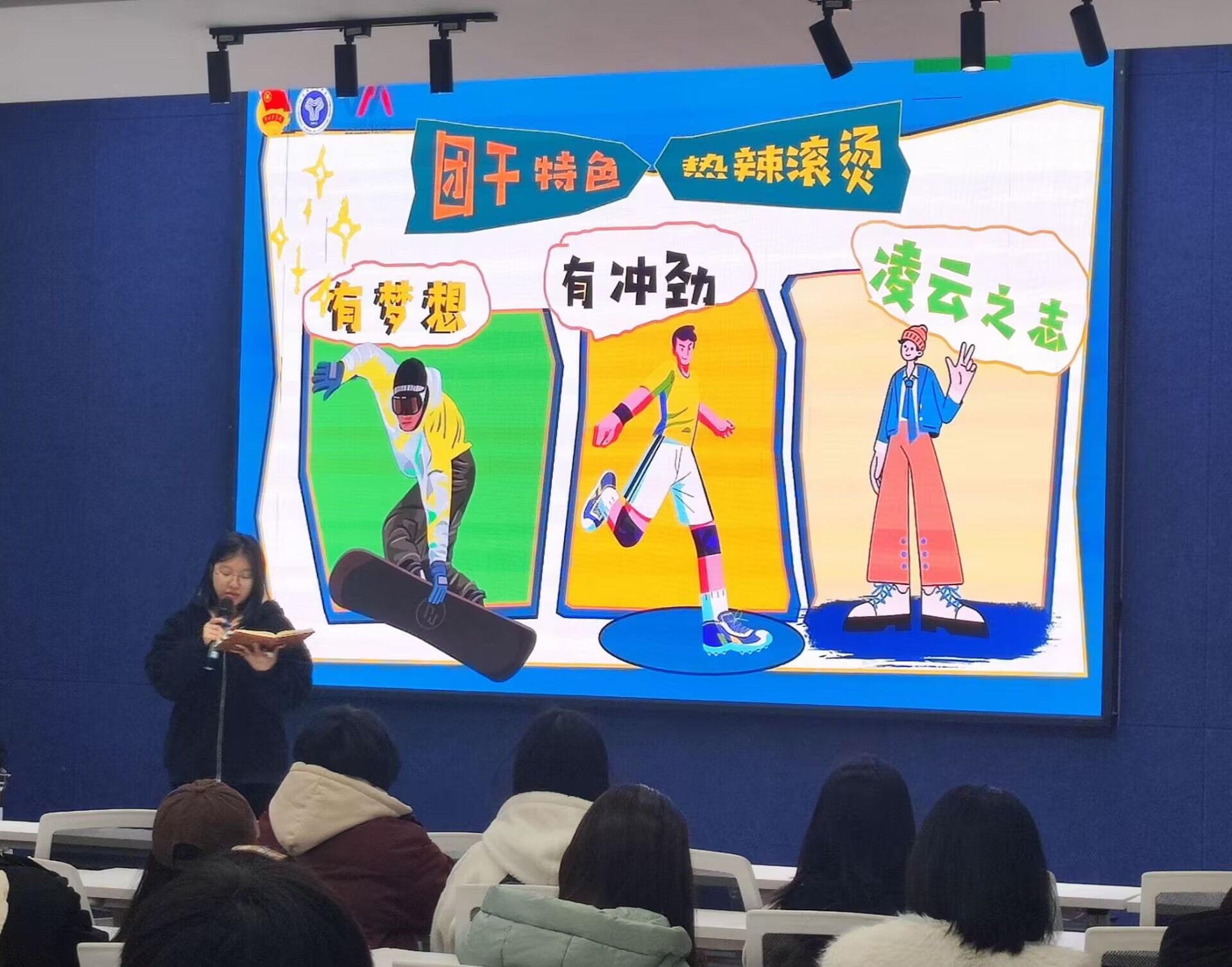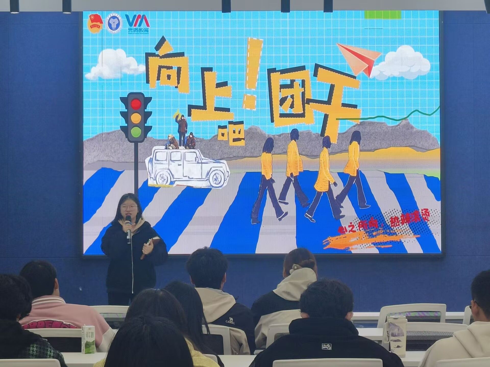 主讲人为大家讲解了敢为先锋,青年团干展担当,他们敢想敢干,于创新里开拓新局,投身参与到宣传设计,资料收集,活动统筹等多项工作中,不仅展现出了非凡的组织协调能力,将各项任务安排得井井有条,确保活动流程顺畅无阻,而且充分发挥了创新思维,有力地提升了团组织在广大青年群体中的影响力与号召力。于此同时激发青年的潜能与热情,将一个个分散的青年个体凝聚成一股强大的合力,向着共同的目标奋勇前进。