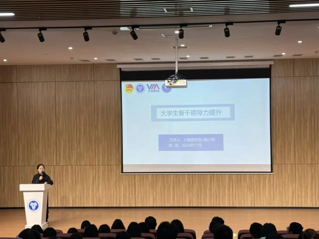 青马工程致力于培养合格的大学生骨干,旨在提升学员的组织能力和实践能力,使他们成为中国特色社会主义事业的合格建设者和可靠接班人。为此,大数据学院青马工程初阶班第二讲特别邀请了大数据学院学工副院长阙小梅老师担任主讲,针对大学生骨干领导力的提升进行了培训。该培训于2024年11月27日在贤者楼131多功能汇报厅成功举行。借助青马工程这一平台,大数据学院不断培育了一批又一批杰出的完满教育学生骨干,持续为完满教育提供杰出的后备力量。