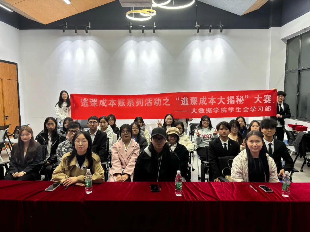 为提升学生的时间管理能力,强化学业规划意识,营造积极向上的优良学风,大数据学院学习部于 2024 年 11月20日17:00至18:30,在綦河书院二号楼两句·演讲培训室举办逃课成本账系列活动之“逃课成本账大揭秘”比赛决赛,致力于为同学们的成长提供有力支持,全力打造有助于提升学习效率的良好氛围。此次活动让同学们深刻理解逃课成本与学业的关系。大数据学院呼吁每位大学生珍惜时光,勿负韶华,愿大家在求知路上坚定前行,追梦天空中自由飞翔,成就理想,绽放青春。
