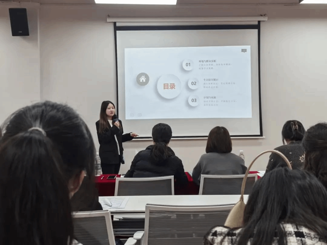 为引导同学们树立正确的职业目标,提升职业素养和就业竞争力,大数据学院就业创业助理团于2024年11月13日16:00在玉棠书院扎堆朋辈空间举办了第二届全国大学生职业规划大赛大数据学院院级选拔赛,本次比赛特别邀请了信息安全学院学工副院长尹金维老师、大数据学院学工副院长阙小梅老师,以及大数据学院辅导员刘奕辰老师、徐培馨老师、李昌茂老师和朱芷萱老师担任评委,共同见证了这一场职业规划的智慧碰撞。