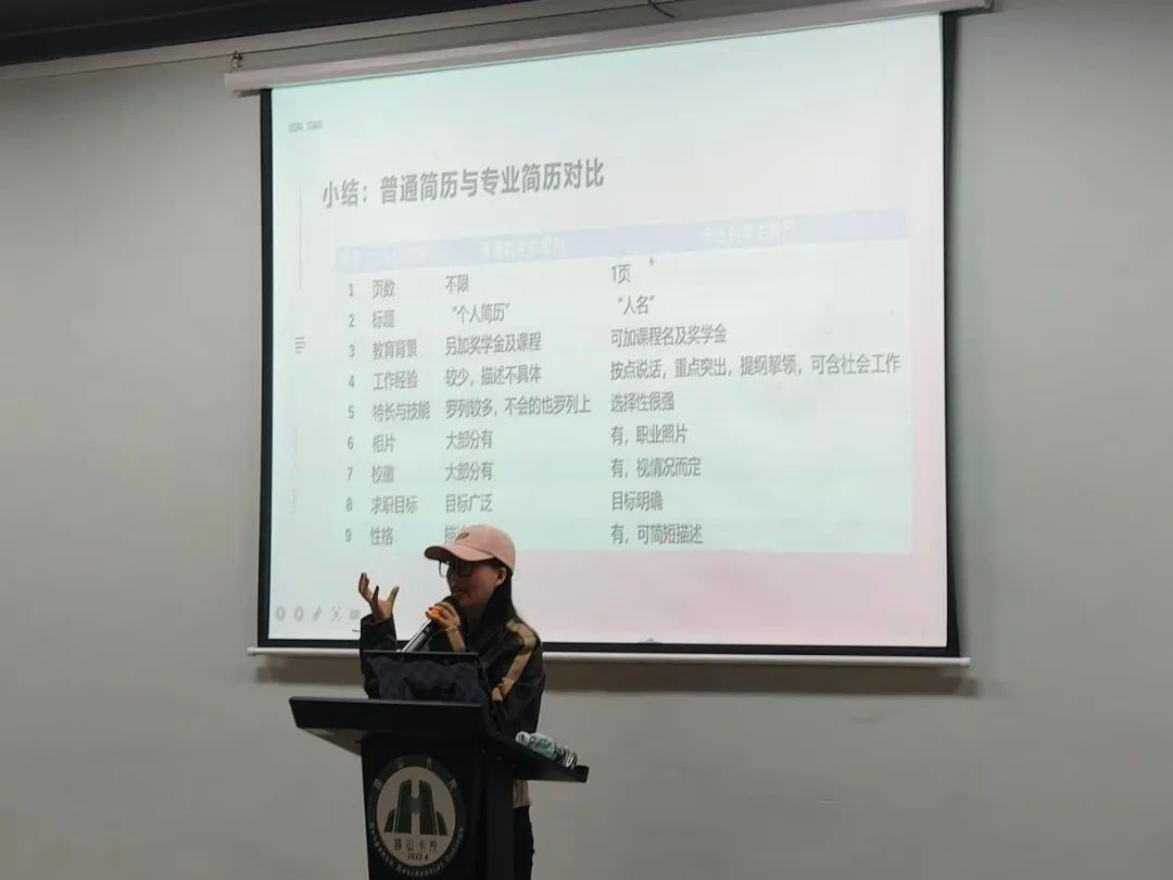 为加强2025届毕业生简历制作意识与能力,以简历优势打开职业新天地,引导学生养成不断修改简历的意识,2024年11月7日16:00,以“专项一对一,完满求职路”为主题的“敲门砖”简历工坊第5期,于綦河书院两句·演讲培训室顺利举行。本次简历指导活动特邀蒋娅娅、徐培馨两位导师担当主讲人。同学们纷纷表示通过本次活动,进一步了解了当前的HR简历要求,并掌握了做好个人简历的方式方法,为开启毕业完满生涯规划奠定了坚实的基础。希望通过本次简历指导活动,能够为同学们即将开启的求职之旅提供强大动力,凭借着精心打磨的个人简历,定能在求职浪潮中乘风破浪!