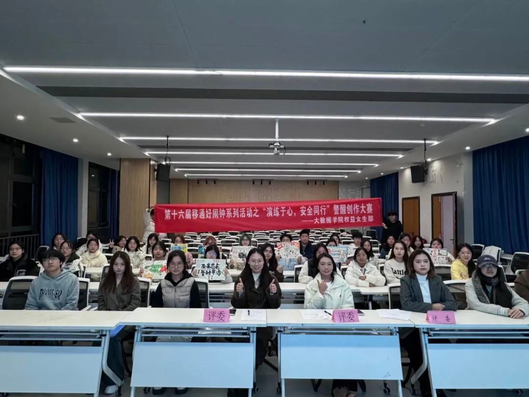 为了进一步强化学生的安全意识,大数据学院权益女生部于2024年11月20日在綦河书院观涛多功能室成功举办了第十六届移通好闹钟系列活动之“演练于心,安全同行”警醒创作大赛决赛。本次活动的成功举办,既为学生们提供了一个施展才华的舞台,又在校园内营造了浓郁的安全文化氛围。未来,大数据学院将继续坚守“安全第一”的原则,持续强化安全教育与管理工作,为师生打造一个更加安全、和谐的成长环境。