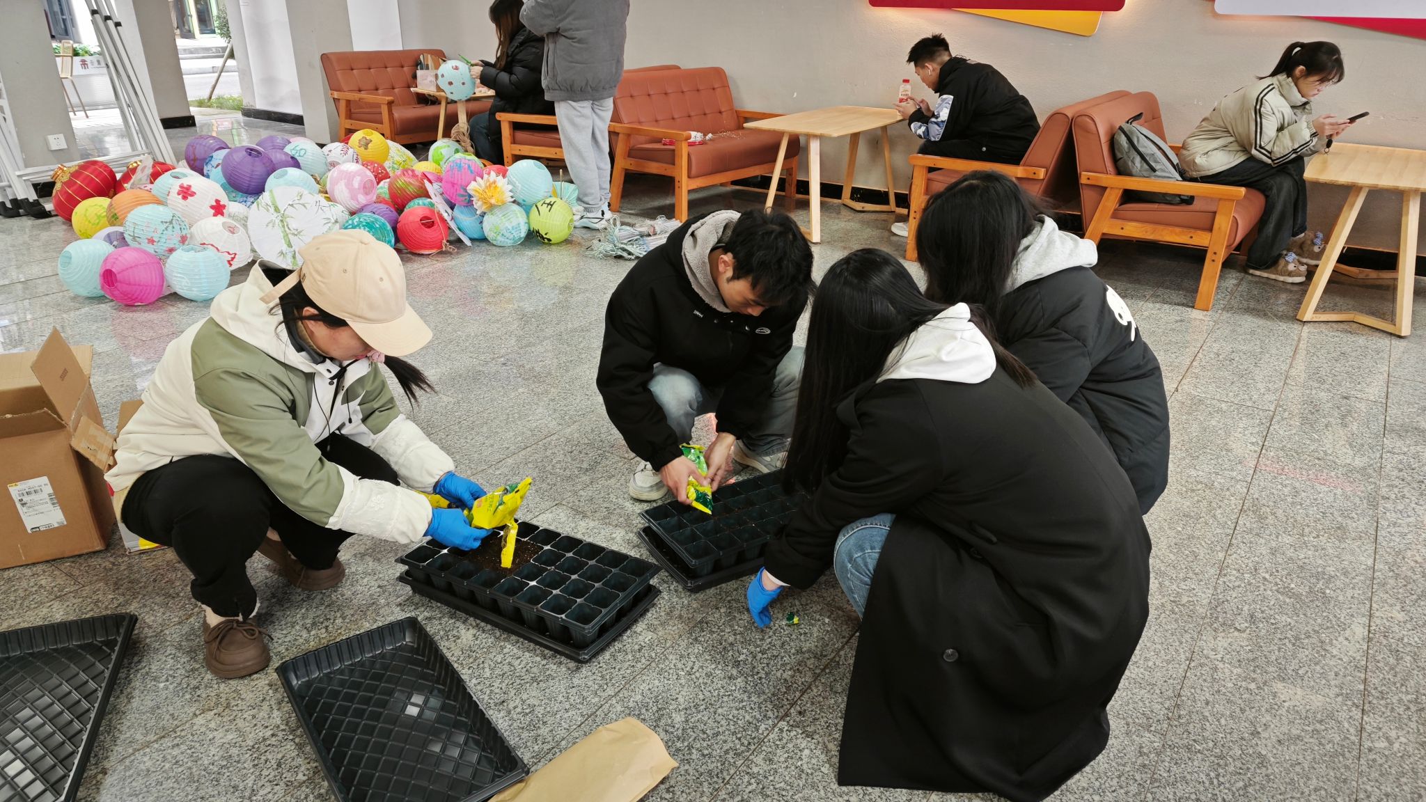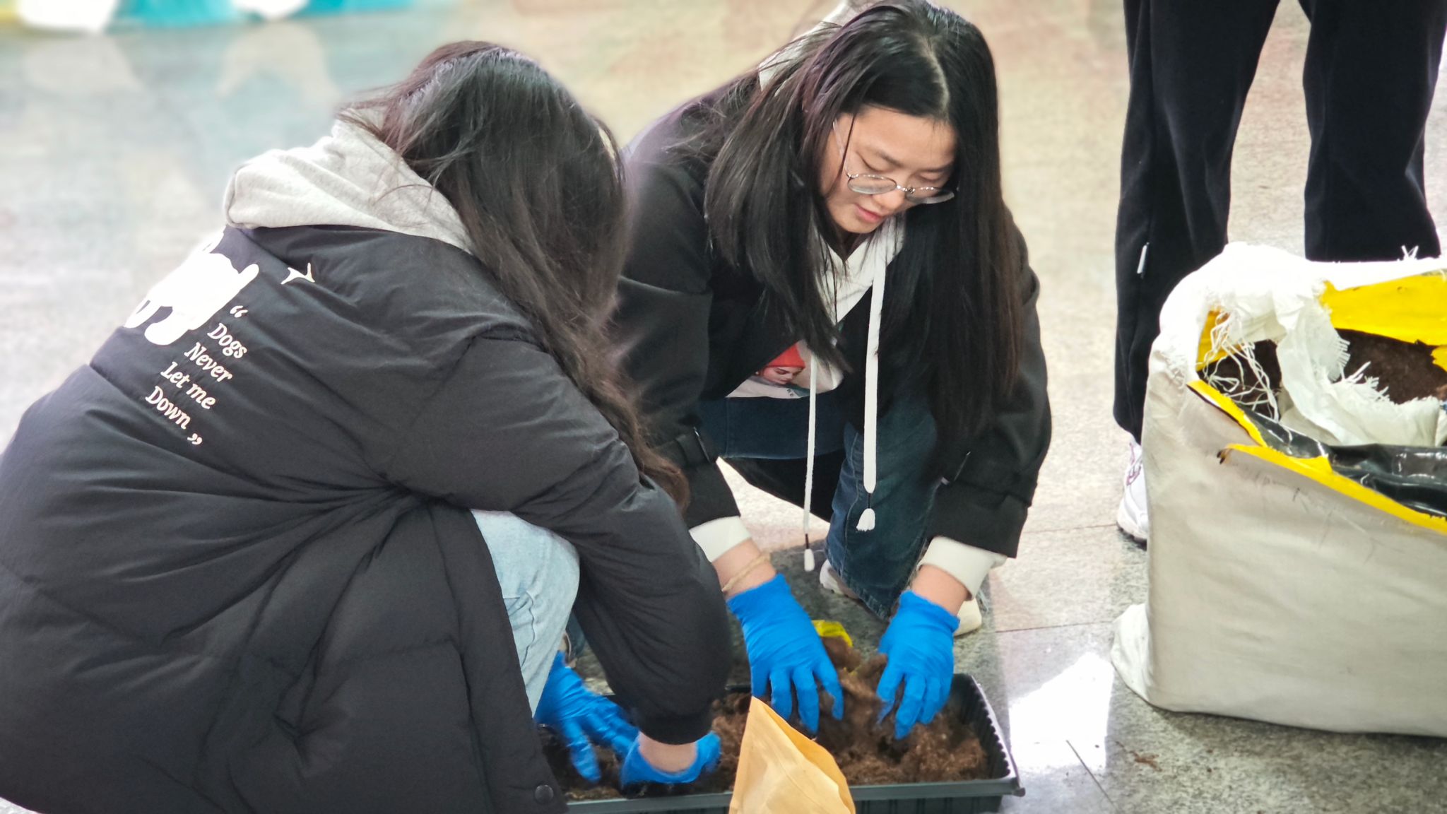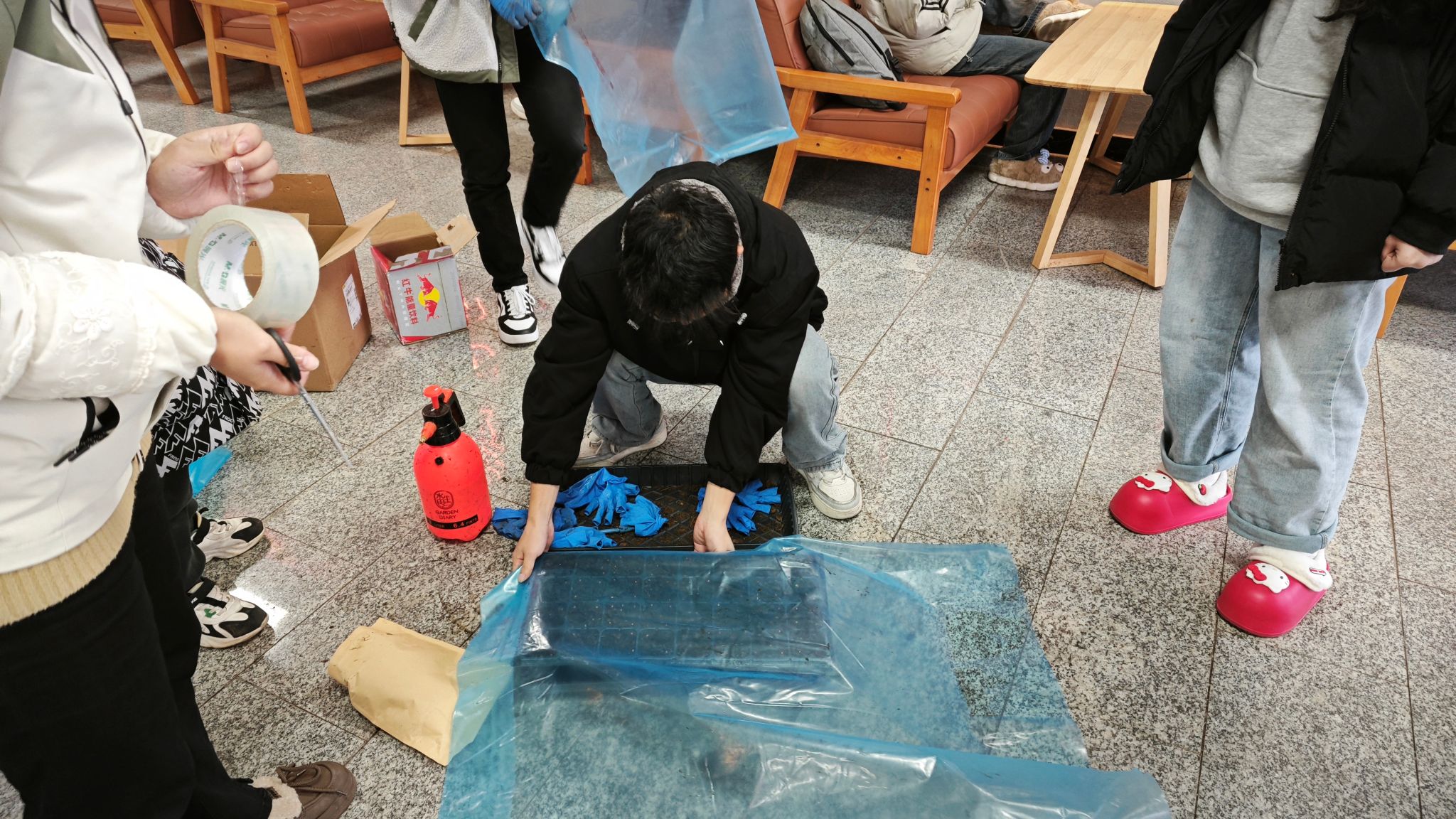 随后,混合好的土壤装入育苗盘中,再将种子播种下去,为了确保种子能在寒冷的冬季顺利发芽,同学们还使用薄膜覆盖,为育苗盘营造了一个温暖而湿润的小环境,这既是对农作物生长条件的精准控制,也是对自然规律的一次巧妙利用。