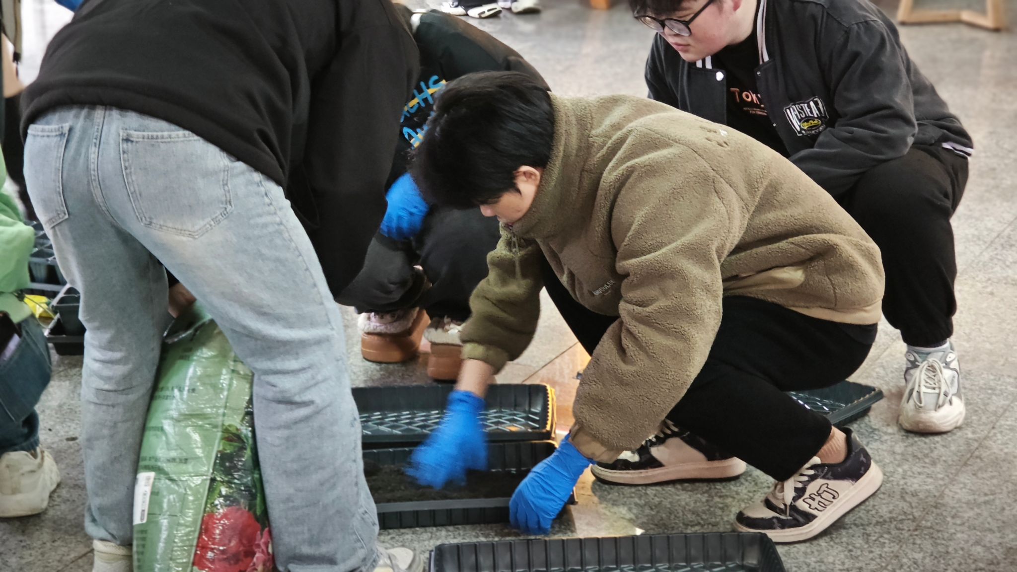 活动前夕,我们有幸邀请到了玉棠书院的吴华英老师作为指导嘉宾。吴老师毕业于云南农业大学,拥有深厚的农业专业背景和丰富的实践经验,在吴老师的悉心指导下,同学们井然有序地开始了育苗的准备工作。首先,他们被分成若干小组,每组分发了一套育苗盘和三种不同类型的土壤——这些土壤各具特色,有的富含有机质,有的排水性能优良,还有的则能有效保持水分。同学们在吴老师的示范下,学会了如何根据作物的生长需求,将这些土壤按比例精准混合,这一环节不仅考验了他们的动手能力,也让他们初步理解了土壤改良的重要性。