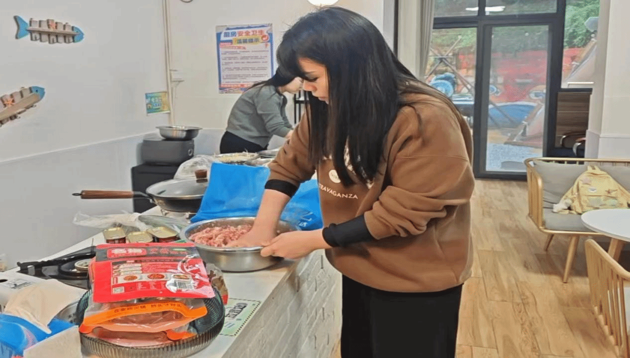 为了活动能够顺利开展,大家准备了充足的饺子皮、各种馅料以及火锅食材。同学们按照事先的分组,开始了紧张而有趣的包饺子比赛。在比赛中,大家各显神通,有的包出了形状各异的饺子,有的则巧妙地将各种馅料搭配在一起,制作出独具风味的饺子。现场欢声笑语不断,同学们在轻松愉快的氛围中,不仅锻炼了动手能力,还加深了对中华传统文化的了解和认同。