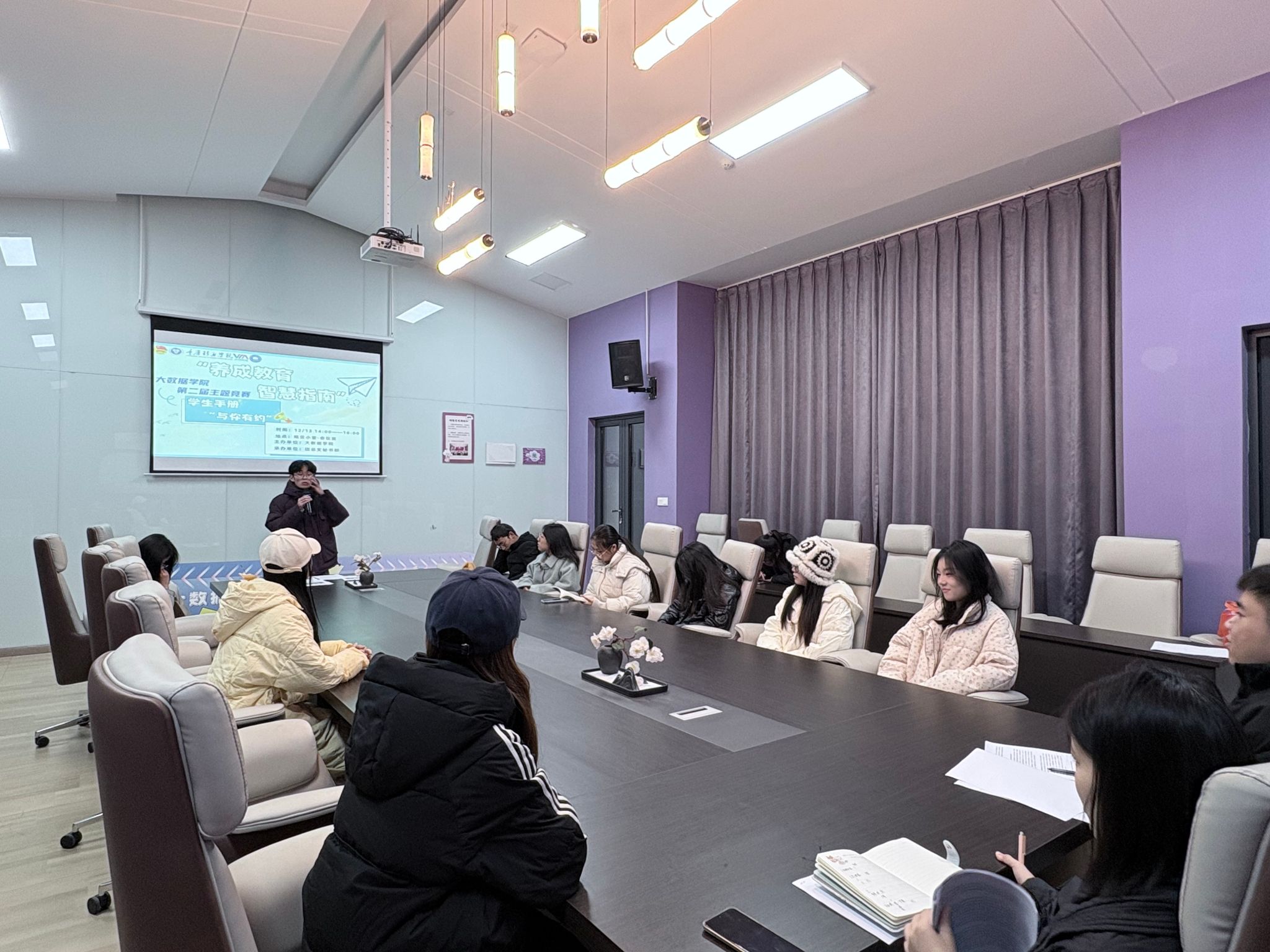 学风宛如校园智慧宝库中的一把密钥,用启迪之力,开启学生探索未知的大门。2024年12月13日下午,大数据学院于观云书院小雪会议室成功举办学生手册知识竞赛--学生管理知识竞答,在竞争白热化的笔试考场后,最终从众多精英中成功突围而出的二十名佼佼者,他们凭借扎实的知识储备,赢得了继续参加后续比赛的资格。