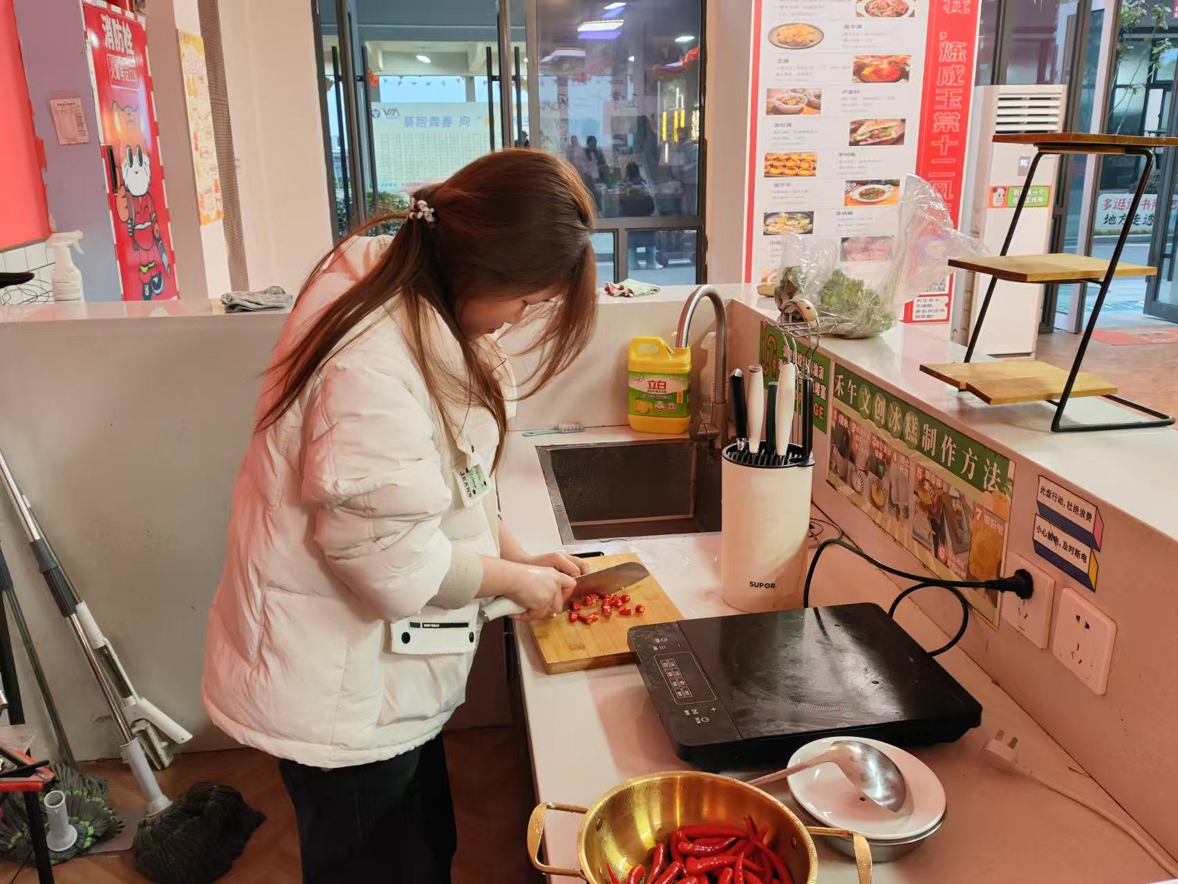 活动当天,功能室内焕然一新,各类新鲜食材琳琅满目,蔬菜翠绿欲滴,肉类鲜嫩多汁,海鲜散发着迷人的气息,多种风味的火锅底料更是令人食指大动。参与活动的师生被随机分组,每组负责一桌火锅的准备工作。洗菜、切肉、调酱,各项任务分工明确,现场热火朝天又井然有序。在合作中,师生们逐渐放下陌生感,从简单的寒暄到深入的交流,话题涵盖学术探讨、职业规划、生活趣事甚至人生目标,彼此间的距离迅速拉近。