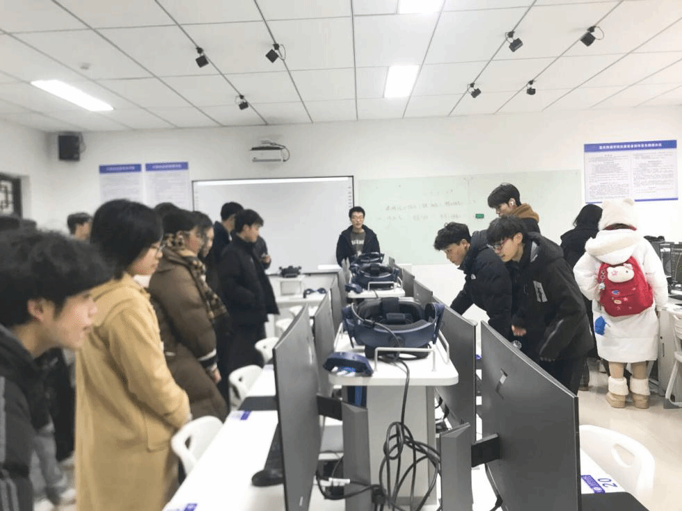 接着重庆化工职业学院师生一行参观公共大数据安全技术重庆市重点实验室和学院相关实验室,潘院长向来访师生介绍了重点实验室和各类软硬件设备。实训中心教师代表在机房演示了教学辅助软件大数据教学平台和数字媒体VR机房软件,让大家进一步了解实验室的设施配置。
