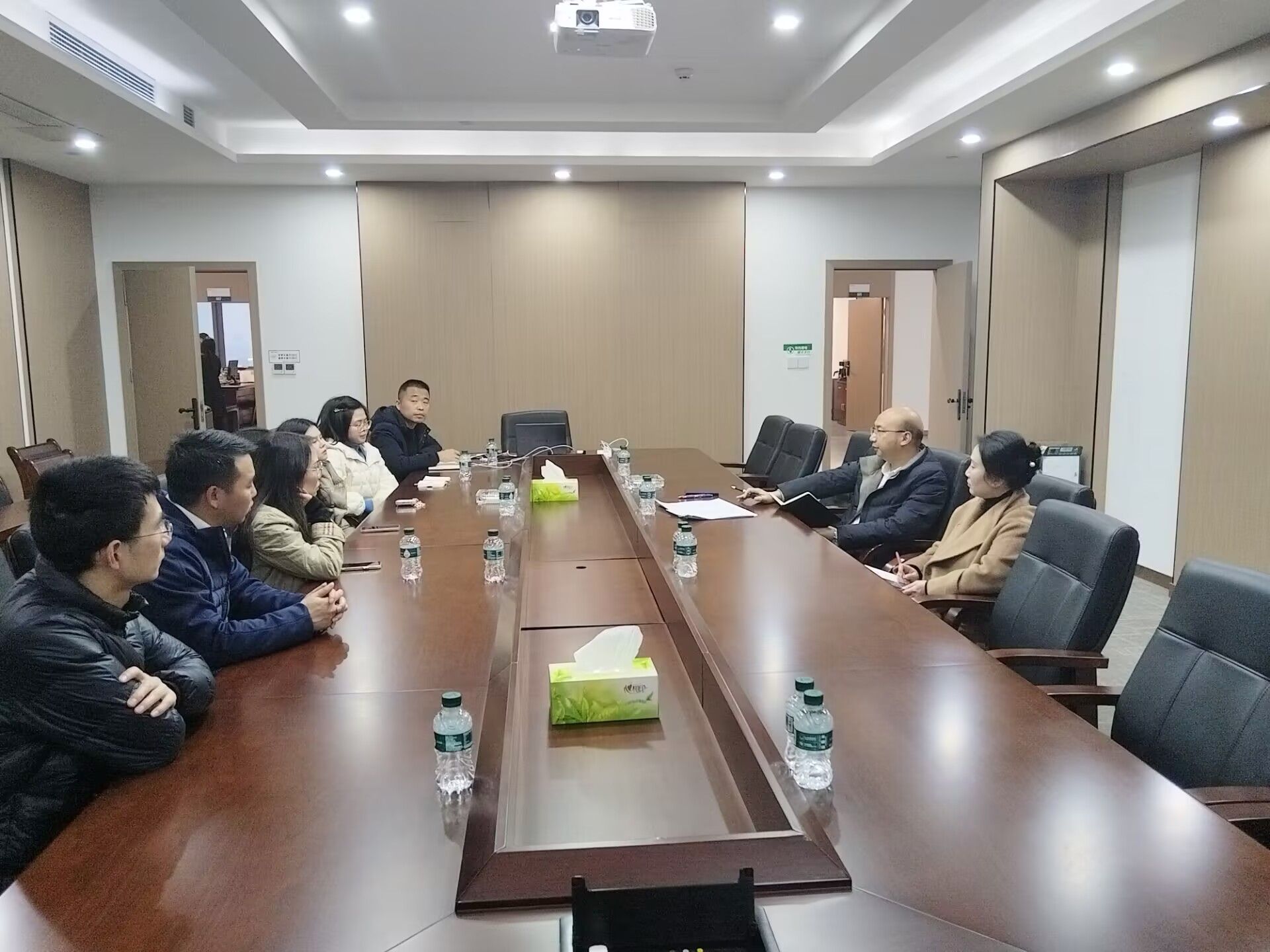 在走访完三家企业后,綦江高新区管委会企业服务部牛主任与大数据学院就创办主任蔡娜、刘成成老师、辅导员蒋娅娅以及新商科教学部等老师于重庆綦江高新技术社区党群服务中心开展企业人才所需与学生就业问题的交流会。同时,重庆綦江高新技术社区党群服务中心的税主任与宋主任参会,围绕企业所需人才与目前綦江区的企业发展状况,进行深入的讨论。