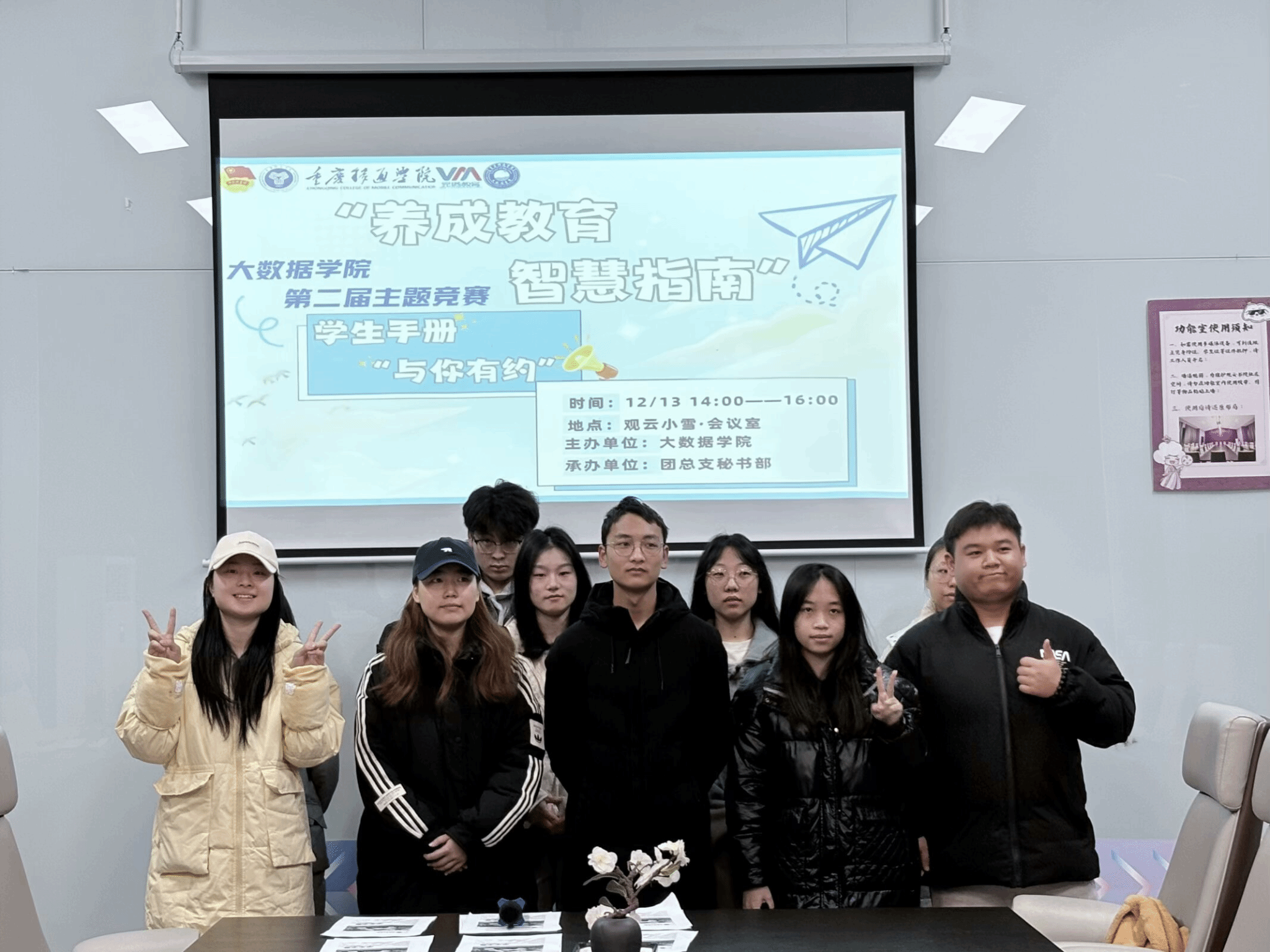 12 月 13 日,养成教育智慧指南——大数据学院“与你有约”学生手册第二届主题竞赛在观云书院小雪会议室圆满结束。竞赛围绕养成教育展开,吸引了大数据学院的同学踊跃报名参与。经过激烈的角逐,20 位同学凭借扎实的知识储备和出色的应变能力成功晋级。