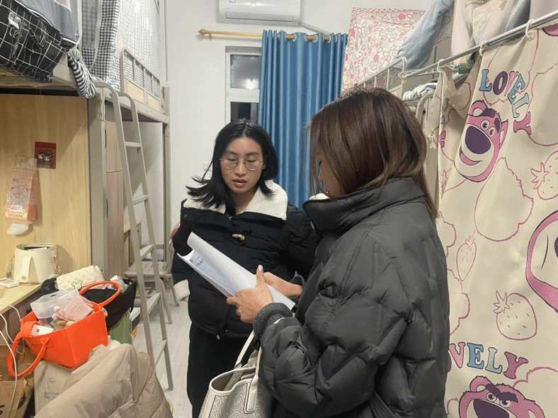 辅导员陈安琪、雷淑娟在玉棠书院进行了细致地查寝工作,关心同学们的期末复习情况和宿舍安全,为同学们送去温暖。她们提醒同学们要注意防诈骗,期末离校时注意购票安全和交通安全,并引导同学们在临近期末之际要正确识别并应对学习、生活中的压力,强调了保持积极心态、寻求专业帮助的重要性。此外,她们还针对考风考纪方面进行了提醒,督促同学们要严明考试纪律,不要作弊,认真对待考试。