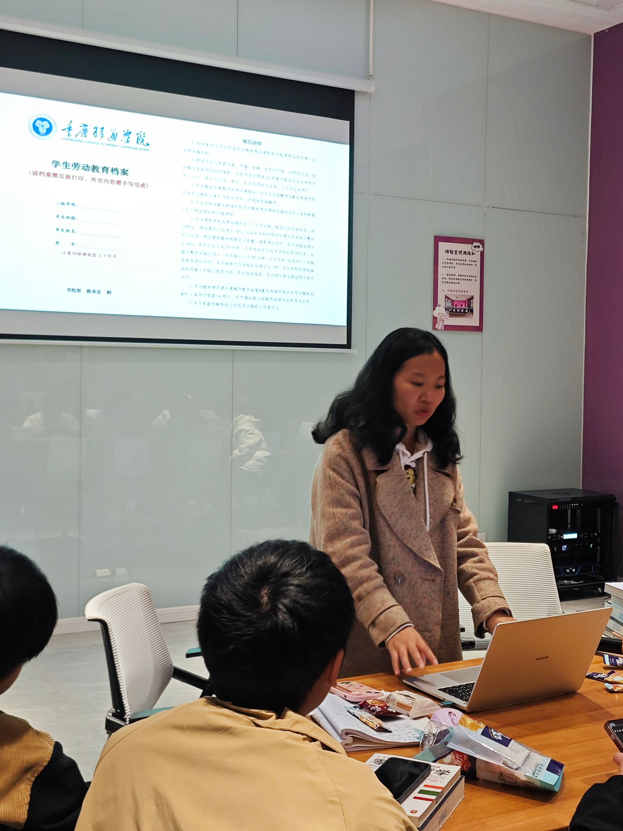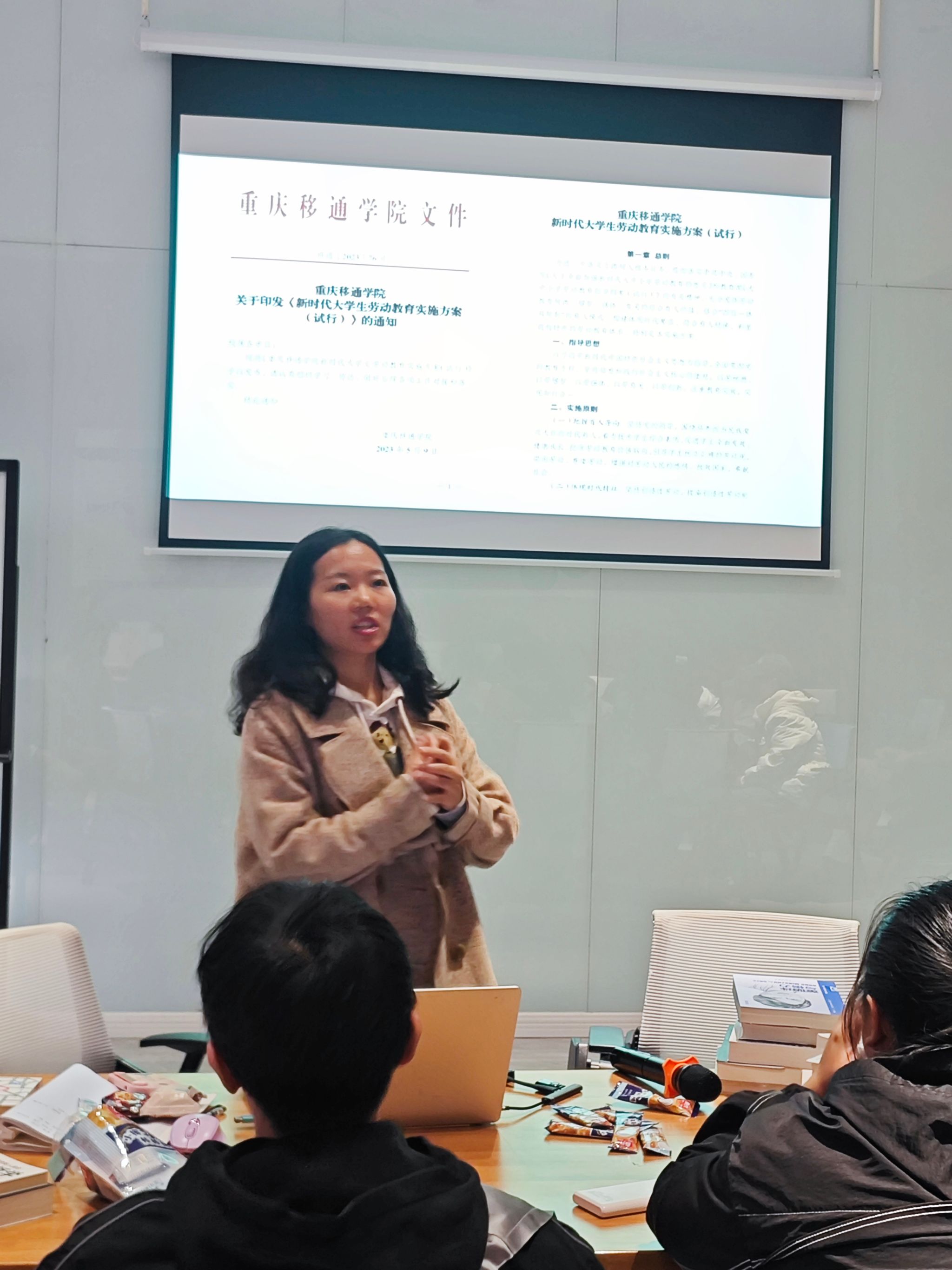 为积极响应学校全生异科导师育人工作,更好让学生理解劳动教育实践文件精神及实践活动内容,11月22日12:30,张红老师通过对她的34位大数据学院2024级数字媒体技术专业专升本4、5班的同学们,在綦江校区观云书院立冬朋辈交流空间,开展了“爱劳动、重实践”主题的劳动教育报告解读会。