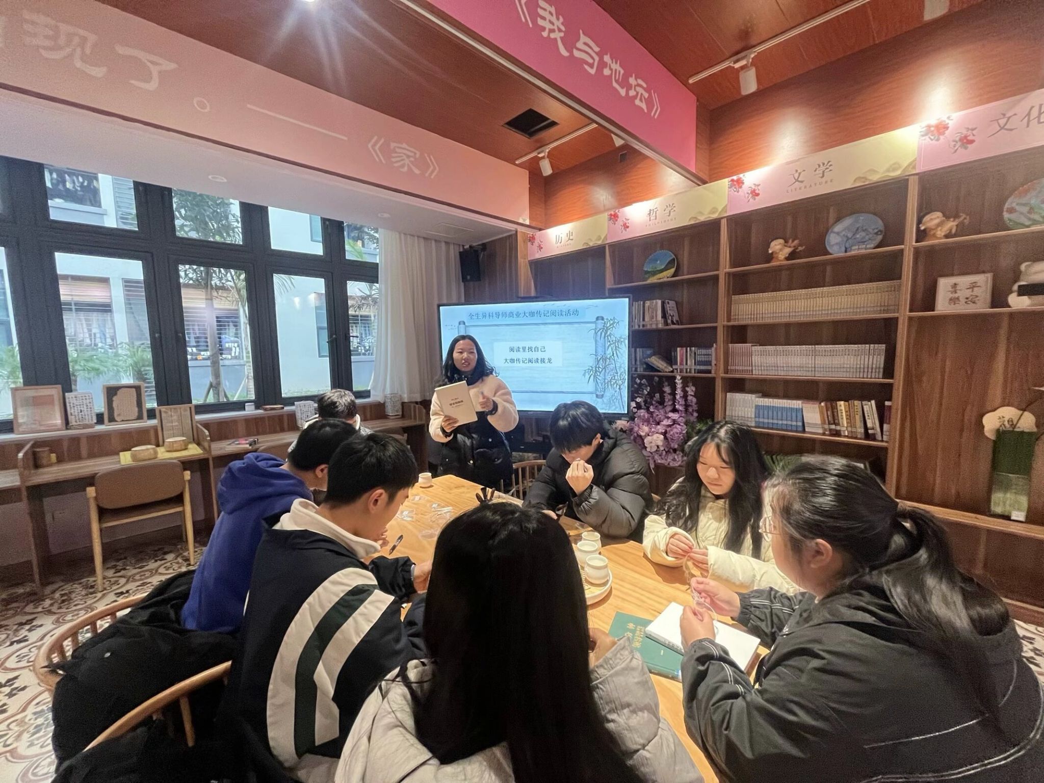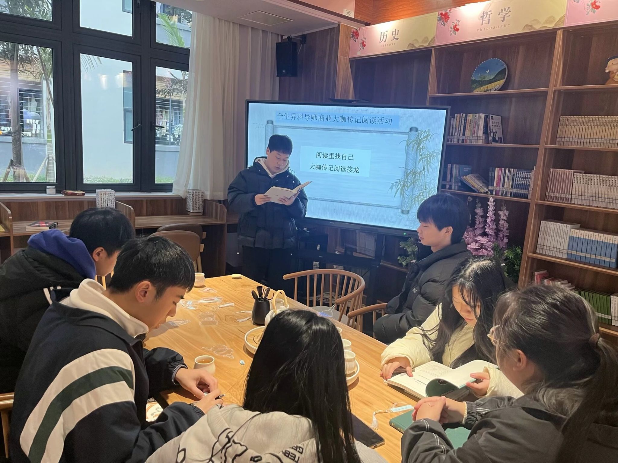 为积极响应学校全生异科导师育人工作,更好开展商业大咖传记阅读活动,12月12日10:00,张红老师与她的大数据学院2024级数字媒体技术专业专升本4、5班的同学们,在綦江校区观云书院阅读书吧,开展了“品道茶香,沁心阅读”为主题的商业大咖传记阅读活动。