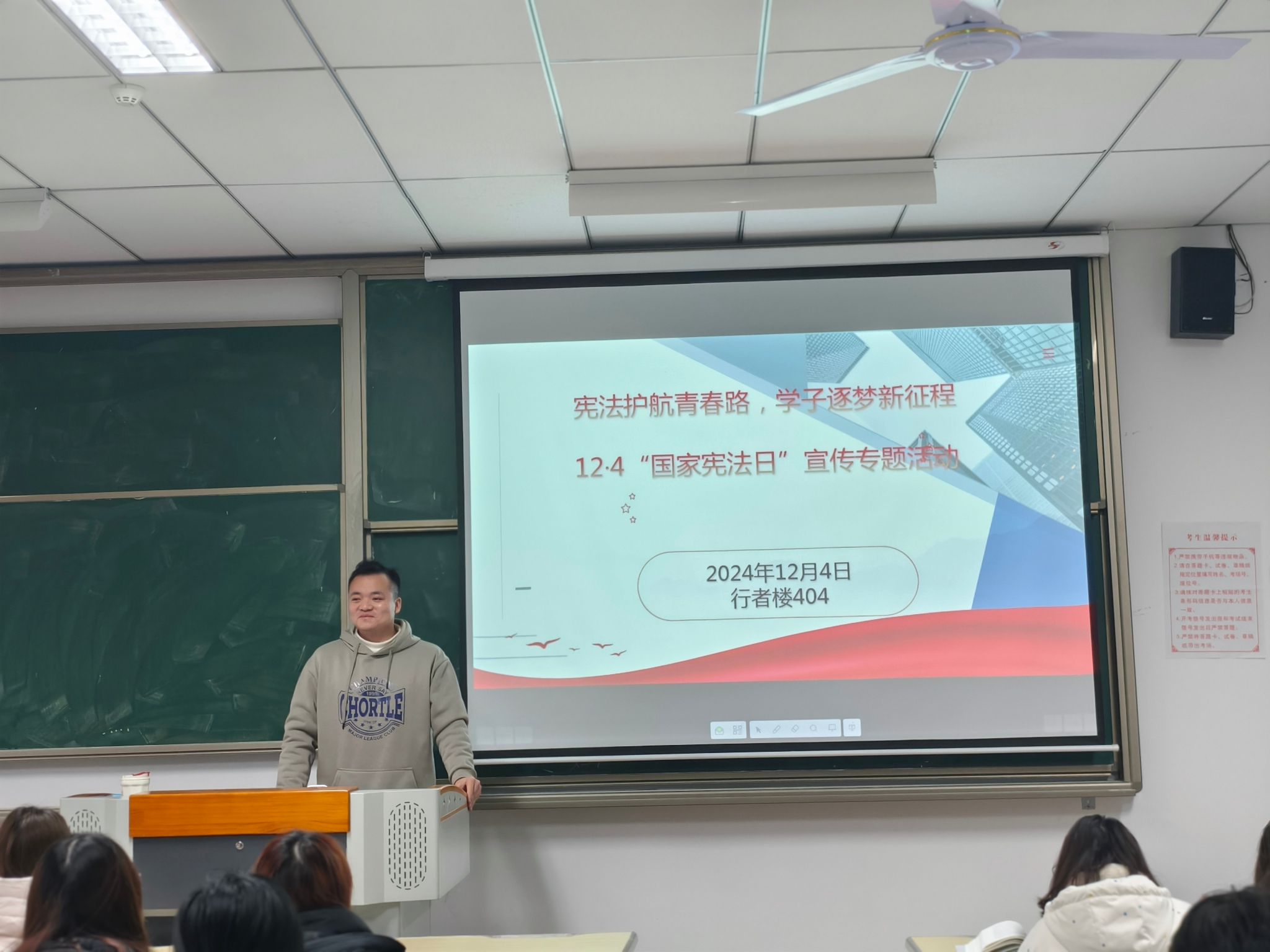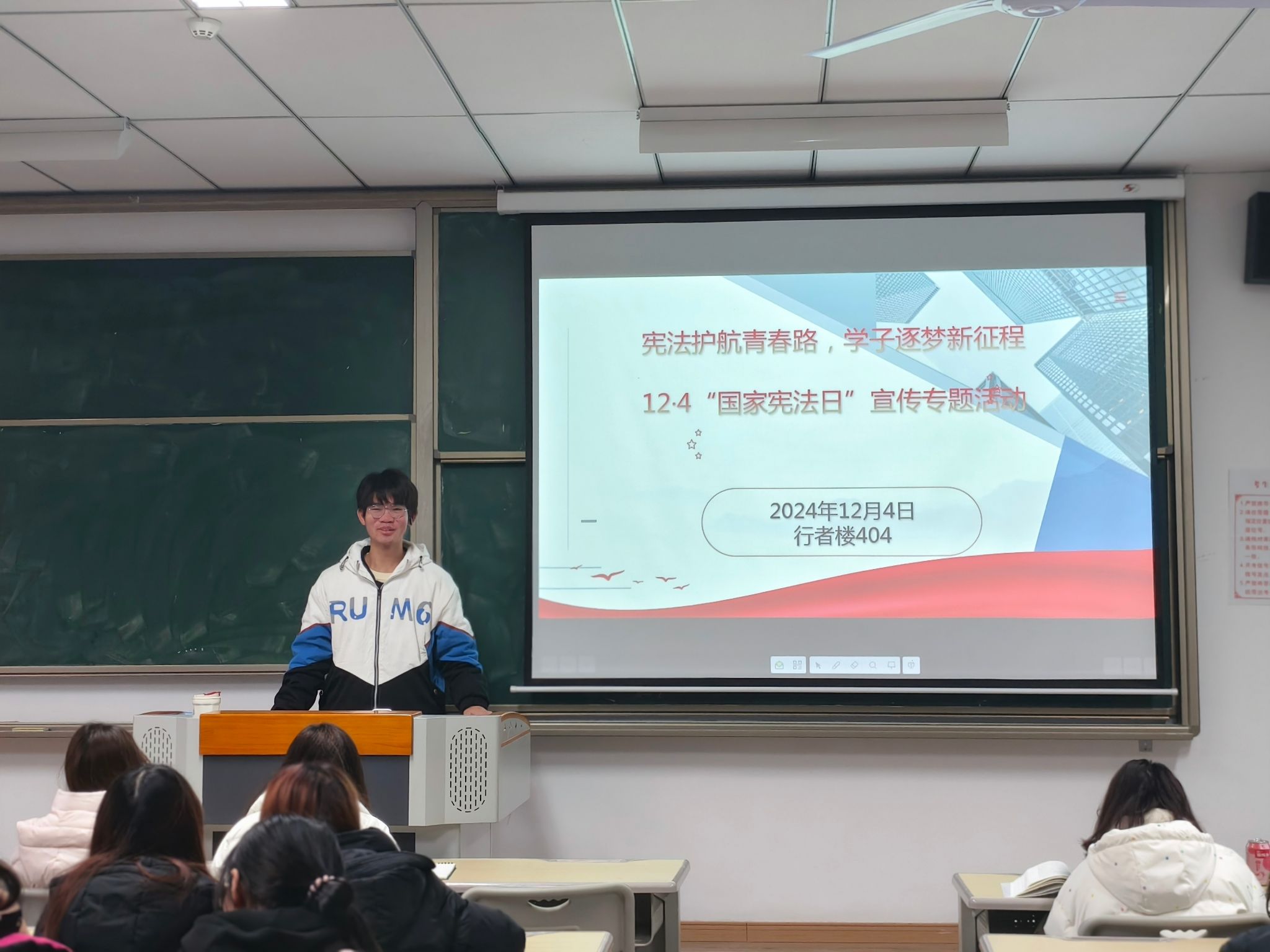 近日,2024级数科5-6异科班同学在行者楼304举行了一场名为,“宪法护航青春路,学子逐梦新征程”的学习宪法专题活动。本次活动由陈安鹏老师主持,杜航骏同学分享了自己的观点与看法。