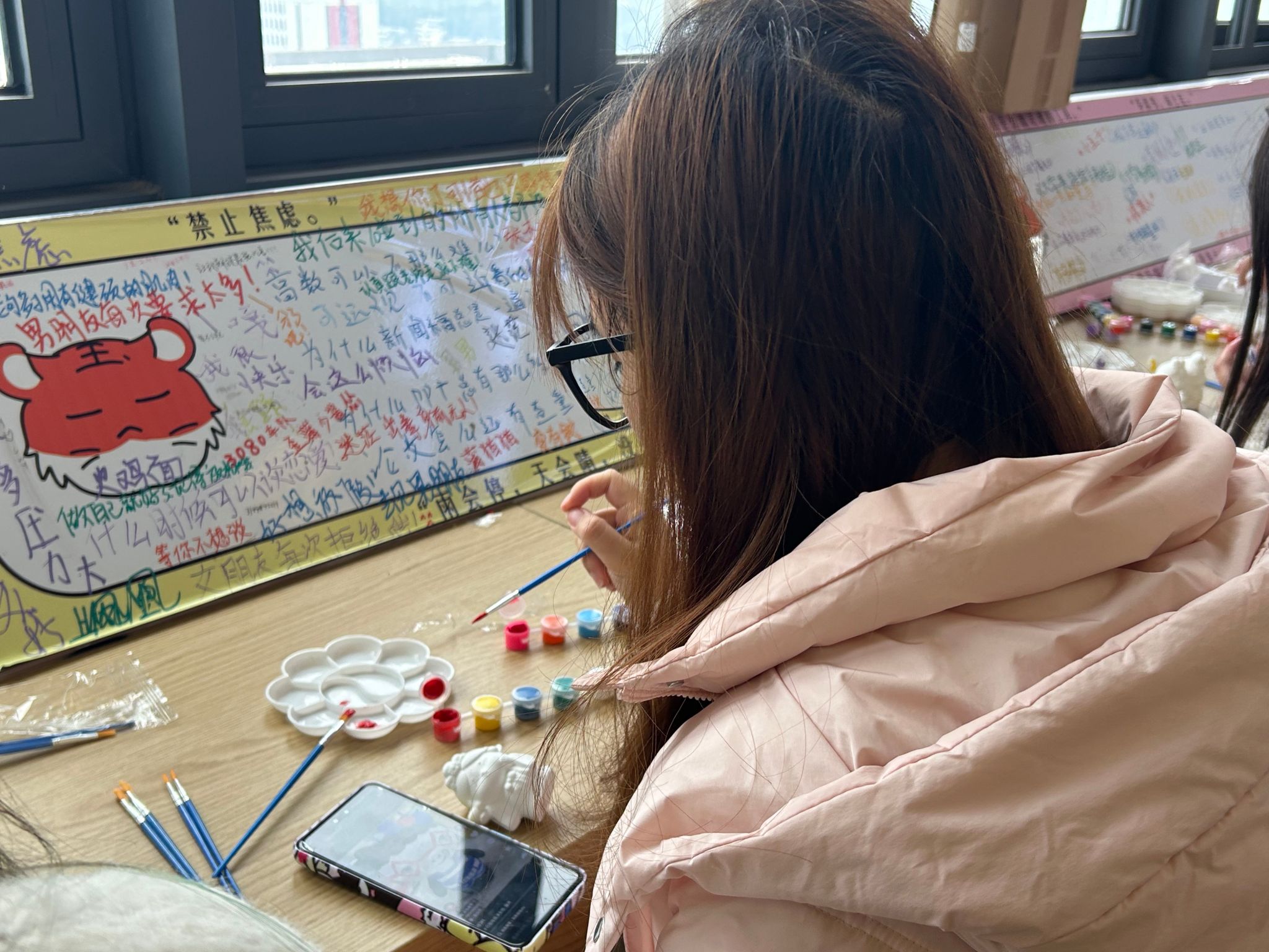 为帮助学生在紧张的期末备考中放松心情、缓解压力,异科导师陈玥竹、龚思月、朱英、王小娟联动策划了一场别开生面的期末减压活动。导师们与学生于12月18日下午在玉棠书院云里发呆室欢聚,通过石膏娃娃涂色、数字油画创作、扭扭棒手工DIY及游戏卡牌互动等丰富多彩的活动,共同度过了一段难忘的欢乐时光。