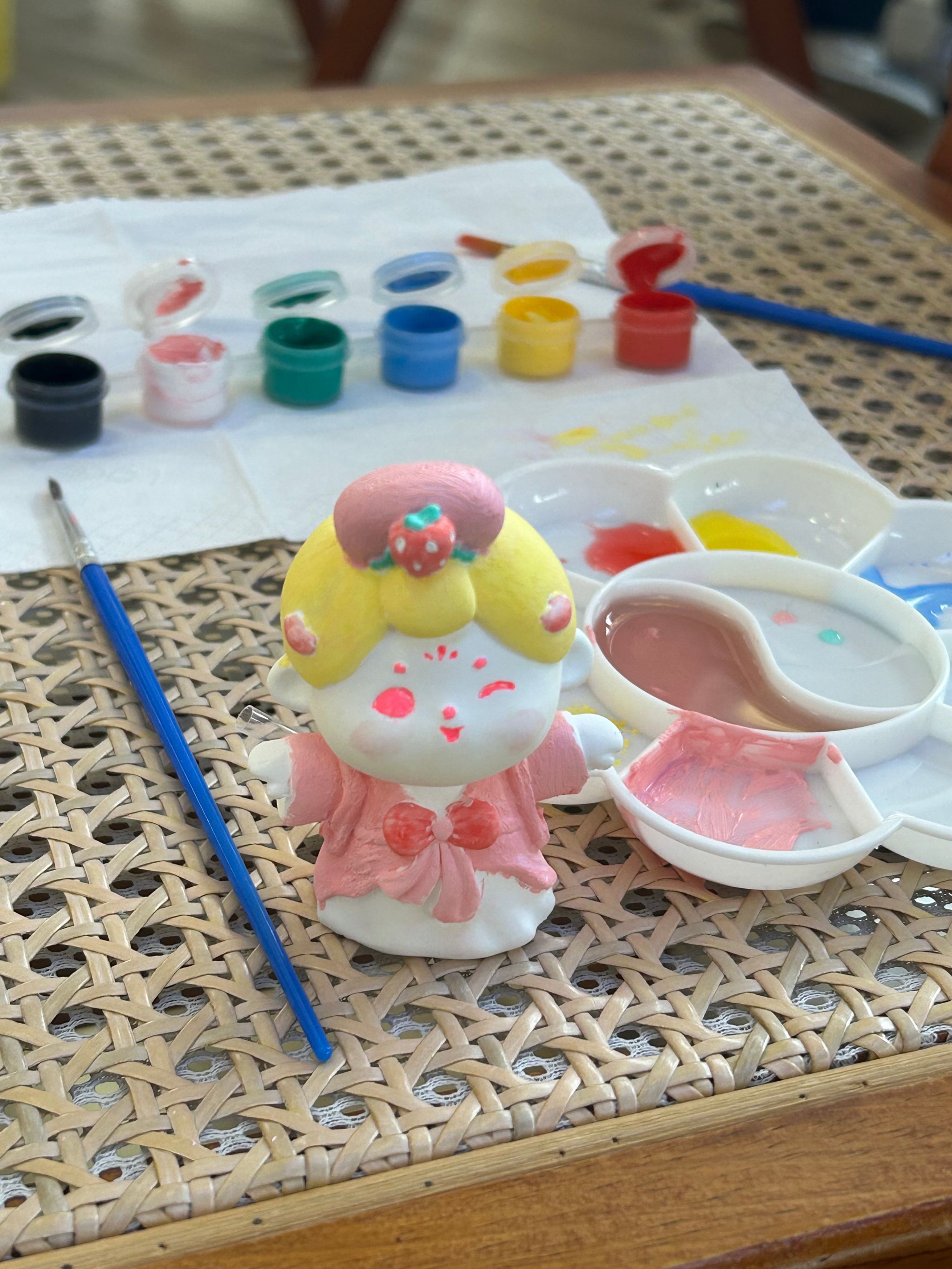 活动伊始,学生们被分成几个小组,每组自由选择参与的活动。在石膏娃娃涂色区,学生们挑选了自己喜欢的石膏娃娃,拿起画笔,尽情挥洒创意。他们或仔细描绘细节,或大胆涂鸦,一个个形态各异、色彩斑斓的石膏娃娃在他们的手中诞生。这一环节不仅锻炼了学生的动手能力和色彩搭配能力,更让他们在创作中感受到了快乐和成就感。