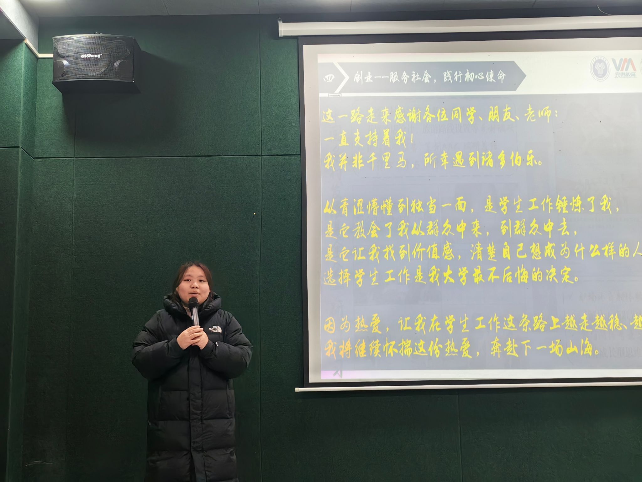 为了帮助同学们敢于参加完满活动,杨丝贻同学讲述了完满活动开展的意义,并且以她的自身的经历为同学们讲述了完满活动的意义以及能够给同学们带来的好处。在杨丝贻同学的分享中,她强调了完满活动对于同学们个人成长的重要性。她提到,通过参与完满活动,同学们不仅可以锻炼自己的组织能力、沟通能力和团队协作能力,还能在活动中结识更多的朋友,拓宽自己的社交圈子。此外,完满活动还能帮助同学们更好地了解自己,发现自己的兴趣和潜力,从而更好地规划自己的未来。