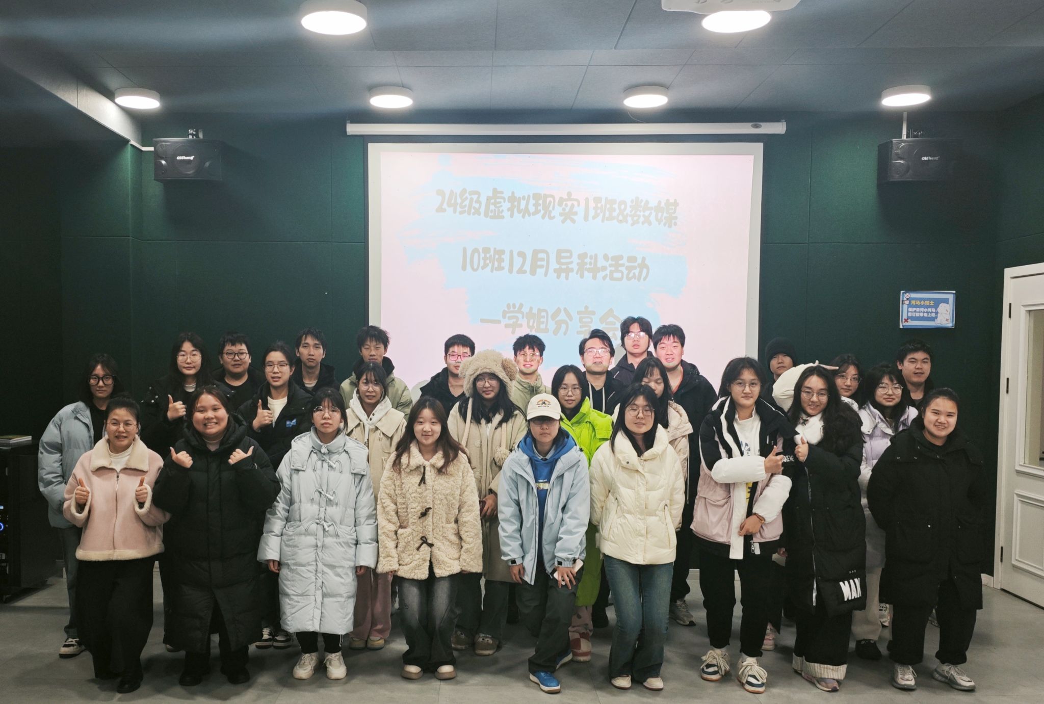相聚情谊深,更胜山海间。为了让同学们更好地适应移通校园生活,能够更加主动、积极地参与完满教育,不再迷茫与彷徨,12月19日10:30,一场特别的分享会在綦河书院星云影音室温馨展开。此次分享会由全生异科导师肖琳老师组织,邀请信息安全学院的杨丝贻学姐进行分享,2024级虚拟现实技术1班和数字媒体技术10班的32名同学共同参与。