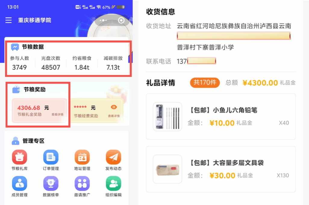 此次活动共产生节粮礼金4306.68元。协会秉持着专款专用、精准帮扶的原则,将这笔资金全部用于支持教育事业。经过多方链接资源并结合实际,最终决定为云南省红河哈尼族彝族自治州泸西县云南普泽村下寨普泽小学购置学习用品,为孩子们的成长助力,让节粮行动的成果惠及更多需要帮助的群体,进一步彰显活动的价值与意义。