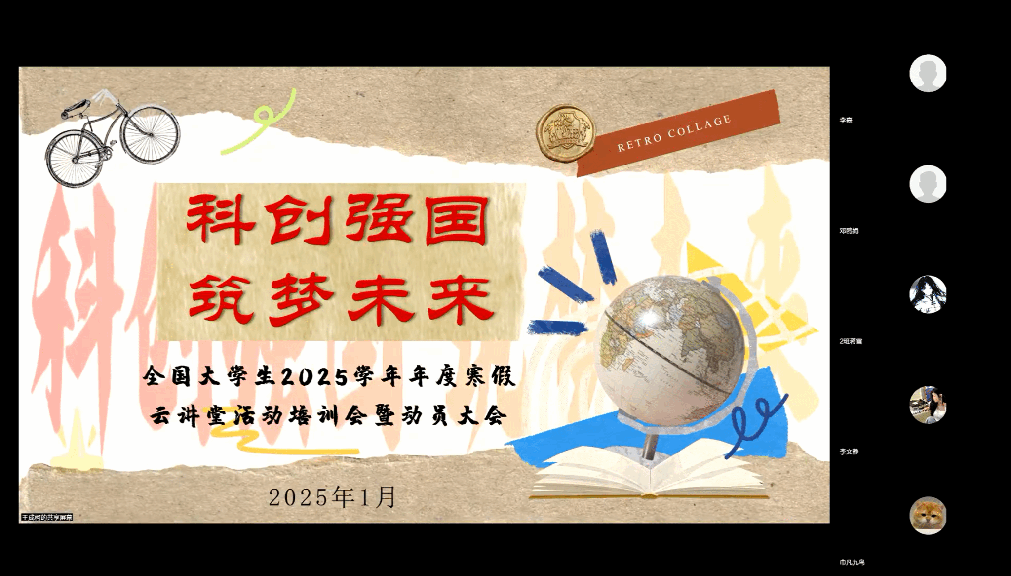 为深入学习并贯彻党的科教兴国战略和创新驱动发展战略,积极响应国家关于加强青少年科技创新教育的号召,大数据学院青年志愿者协会积极响应并开展由团中央青年发展部指导、中国光华科技基金会承办的“科创强国,筑梦未来”一起云支教专项活动。活动正式开始前,我院针对云支教专项活动组织开展线上培训,此次培训旨在提升志愿者的专业素养和教学能力,为志愿者们答疑解惑,确保活动能够高质量、高效率地进行。
