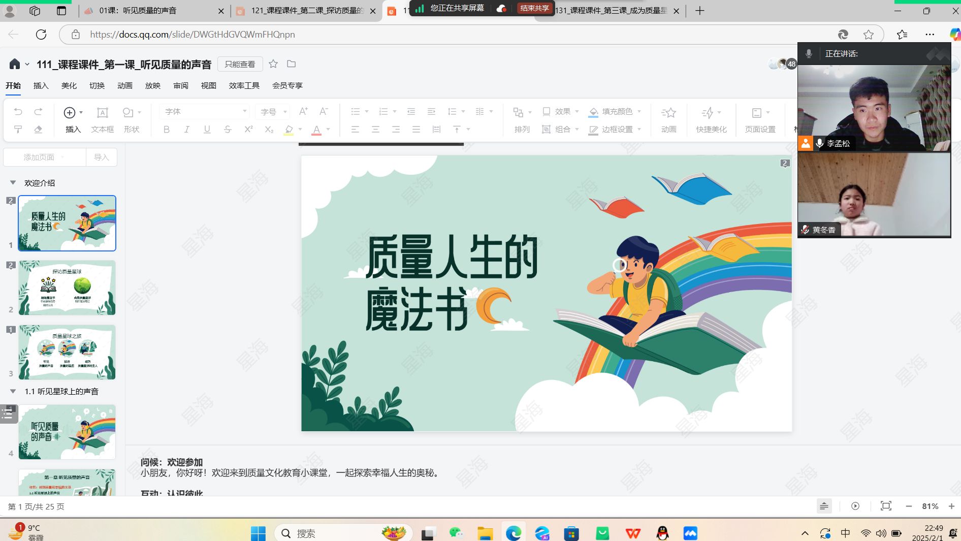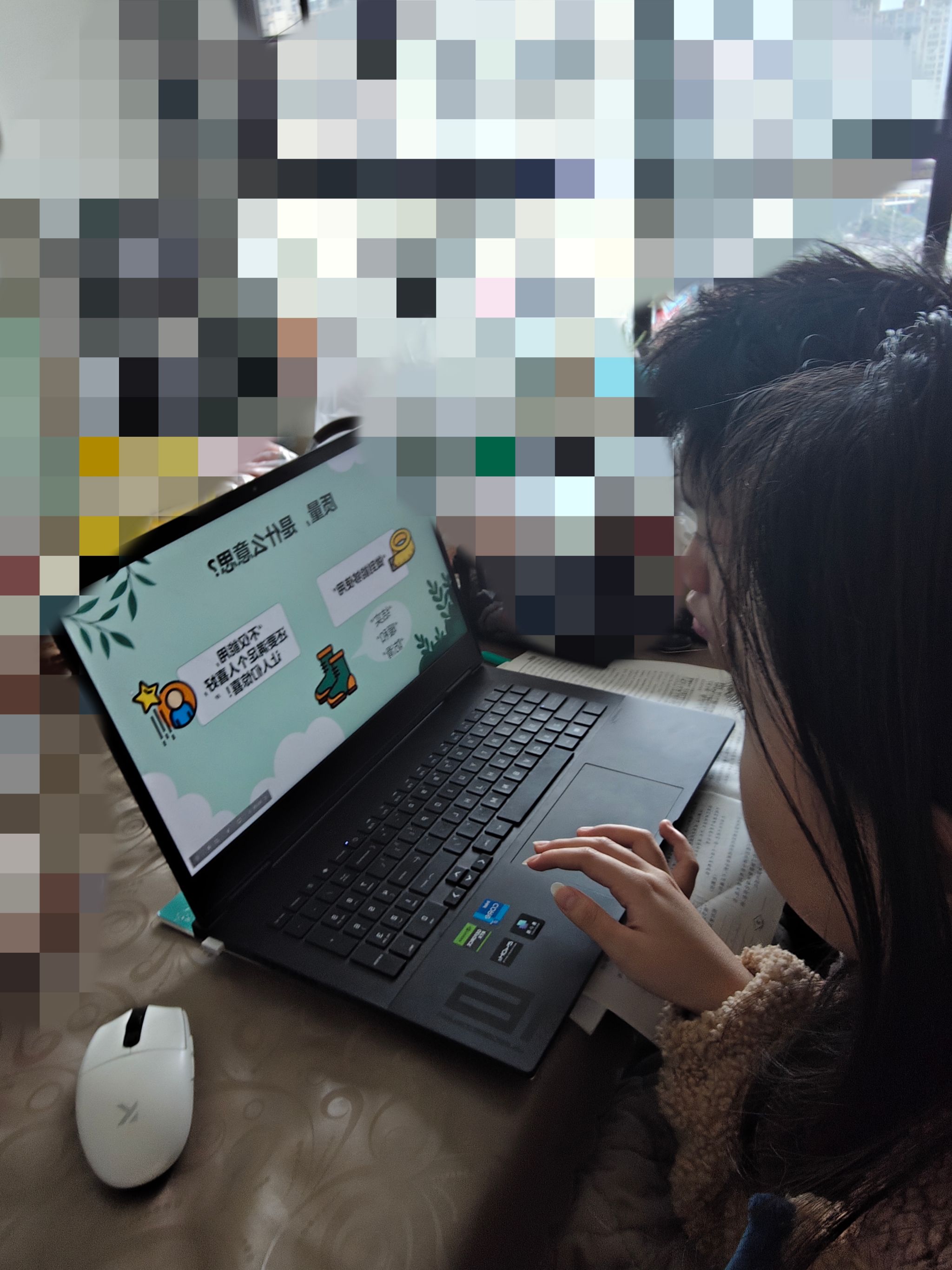 线上教学中,采取志愿者们自主招募策略,实现与中小学生的精准匹配,推出个性化“一对一”课堂,确保每位学生的特定学习需求及个性特征得到充分考量与满足。其中,志愿者高敏以细致入微的方式指导着小朋友,她通过生动的案例和故事,引导小朋友们思考什么是真正的“质量人生”。课堂上,她鼓励小朋友们积极发言,分享自己对人生的理解和期望。在小朋友们表达对未来既憧憬又迷茫的情感时,她耐心倾听,然后运用课程中的理论,帮助他们分析现实与梦想之间的差距,并引导他们逐步明确自己的人生目标。