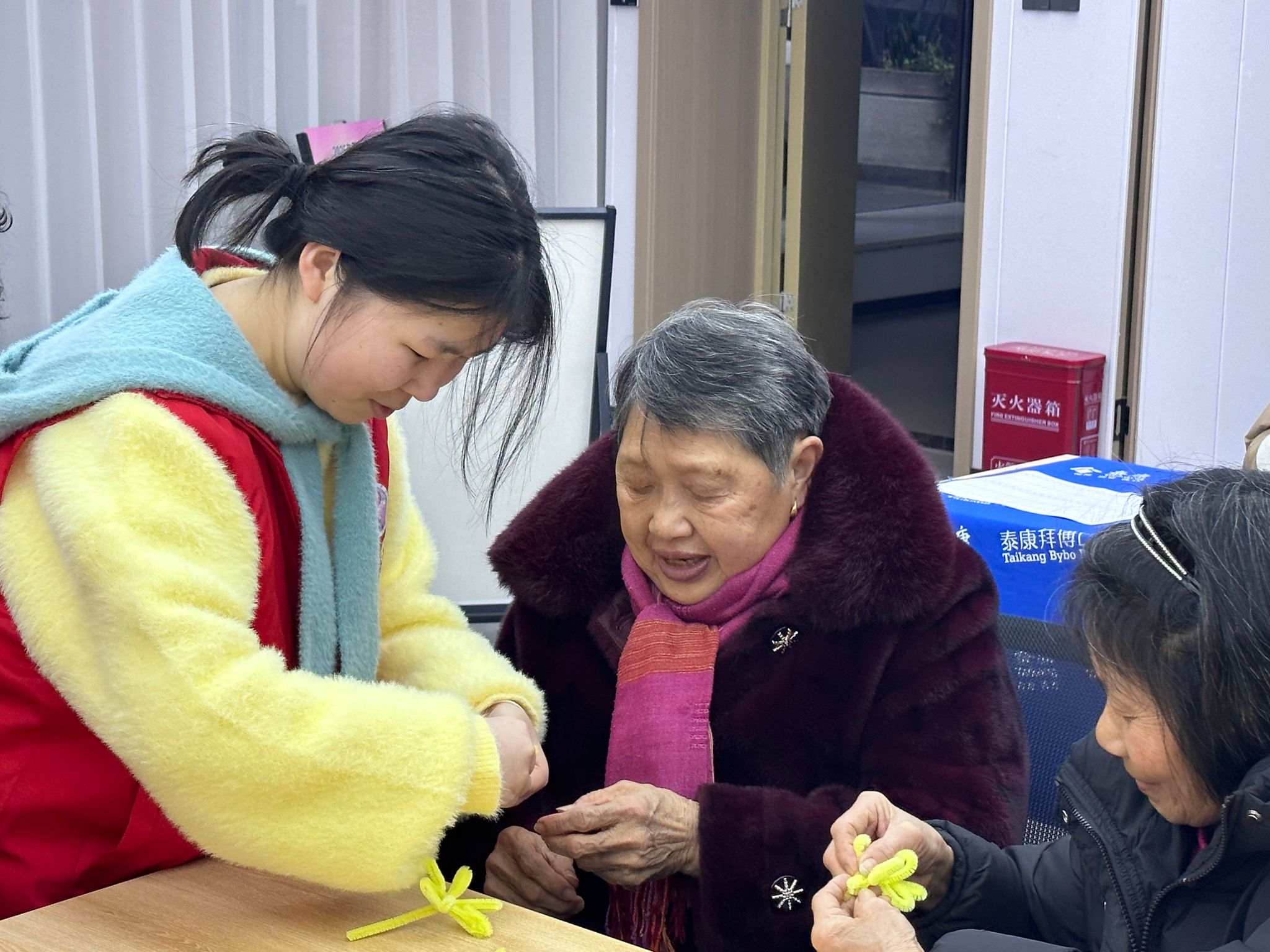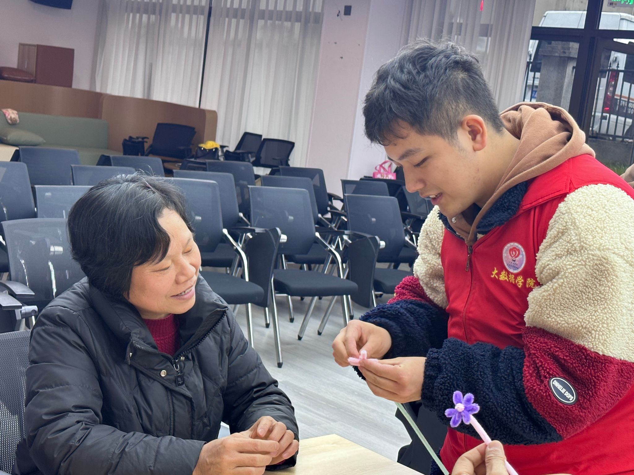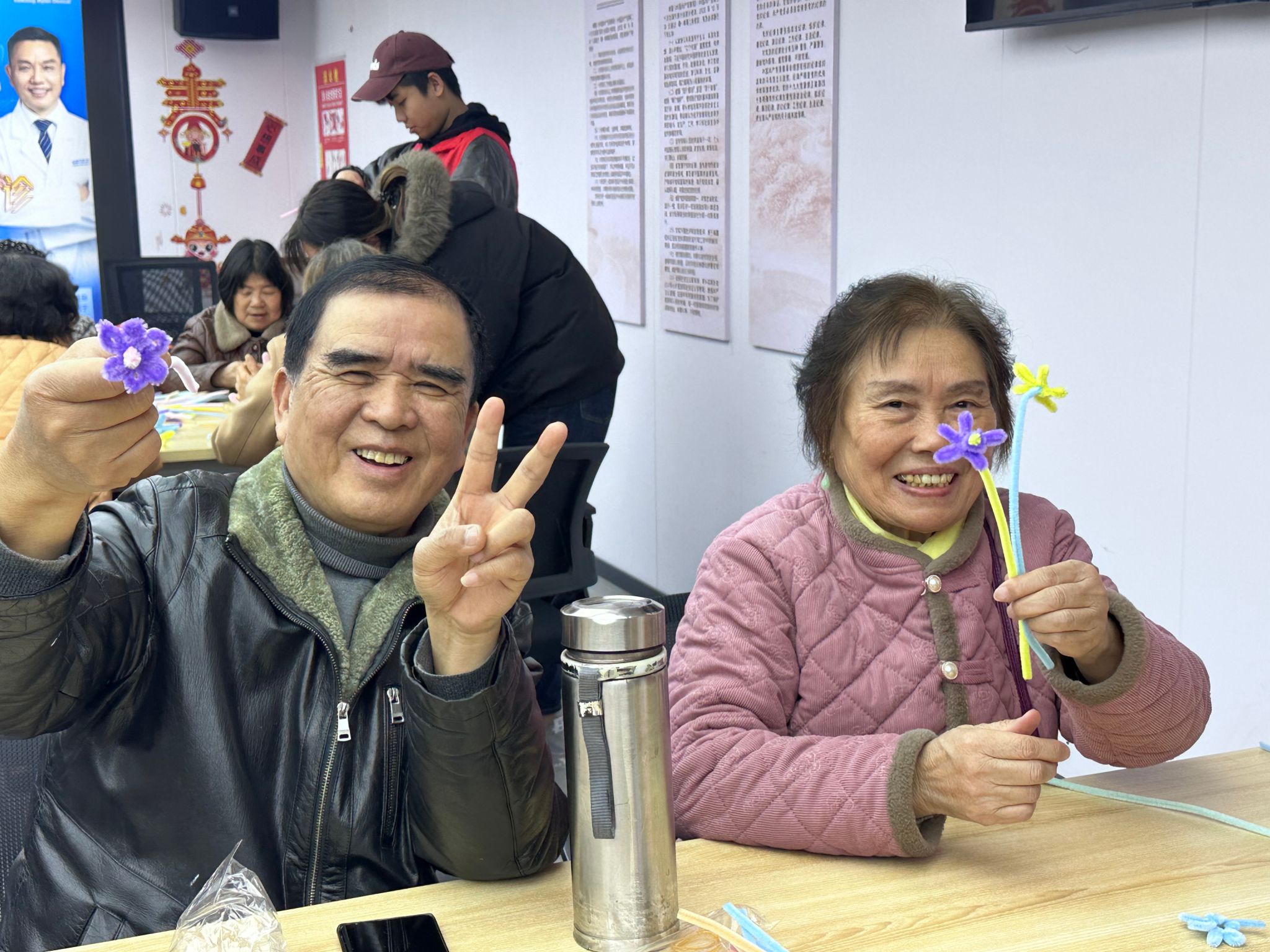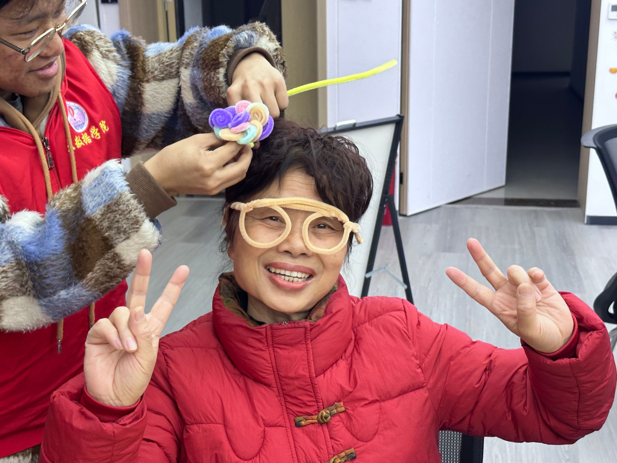 为了让活动更加丰富多彩,志愿者们精心策划了一场扭扭棒手工制作活动。在每一位志愿者一步步的悉心指导下,老人们逐渐掌握了扭扭棒的制作技巧,从最初的生疏到后来的慢慢熟练,他们用双手创造出了一朵朵色彩斑斓的花朵、一只只活灵活现的小动物。每一件作品都凝聚着老人们的智慧与匠心,更承载着他们对美好生活的憧憬与热忱。当老人们完成自己的作品后,他们高兴地向身旁的老人和志愿者们分享着,并高兴的表示要将自己亲手做的手工作品带回家,用花瓶插起来,作为家中的一抹亮色。