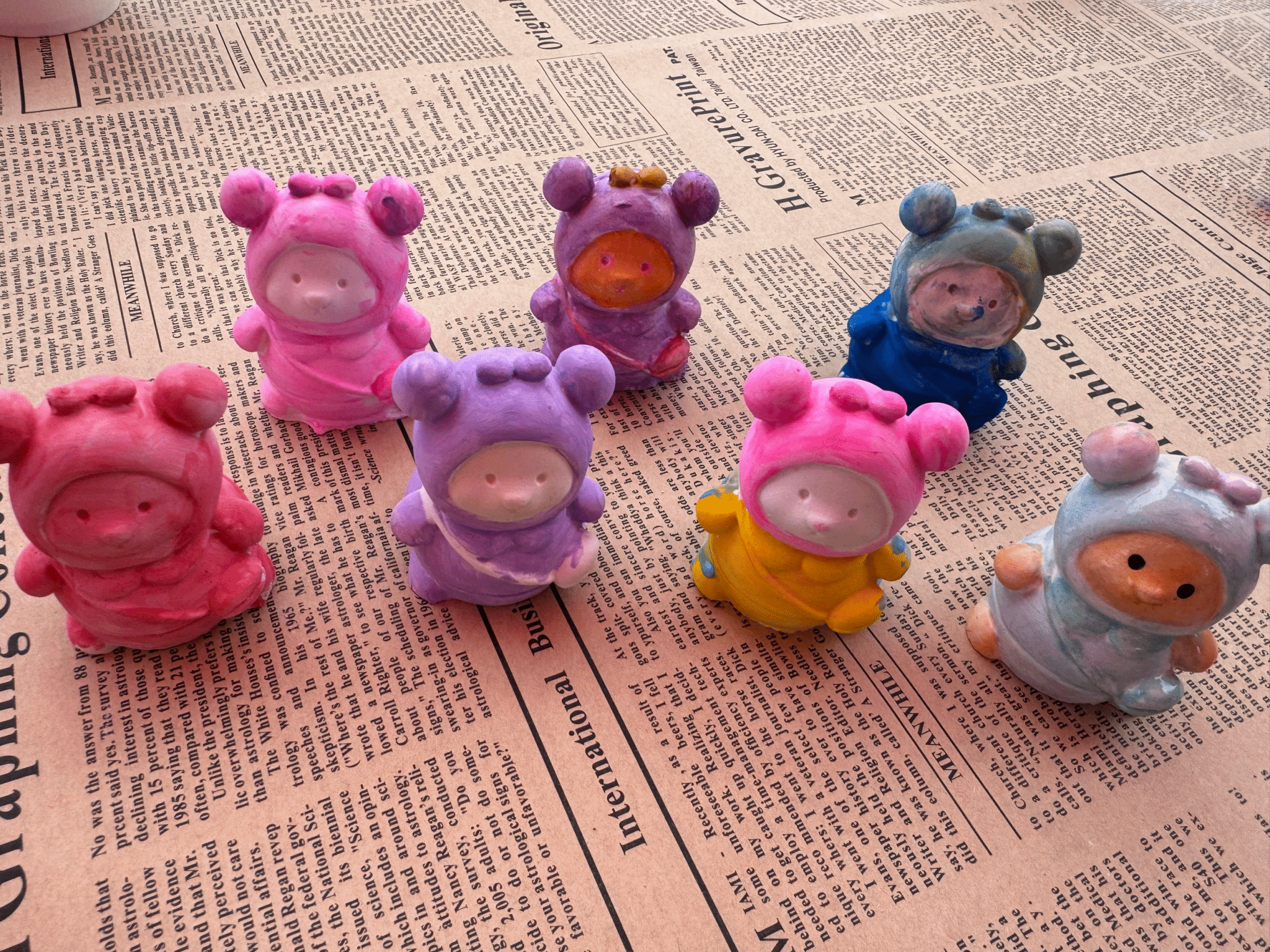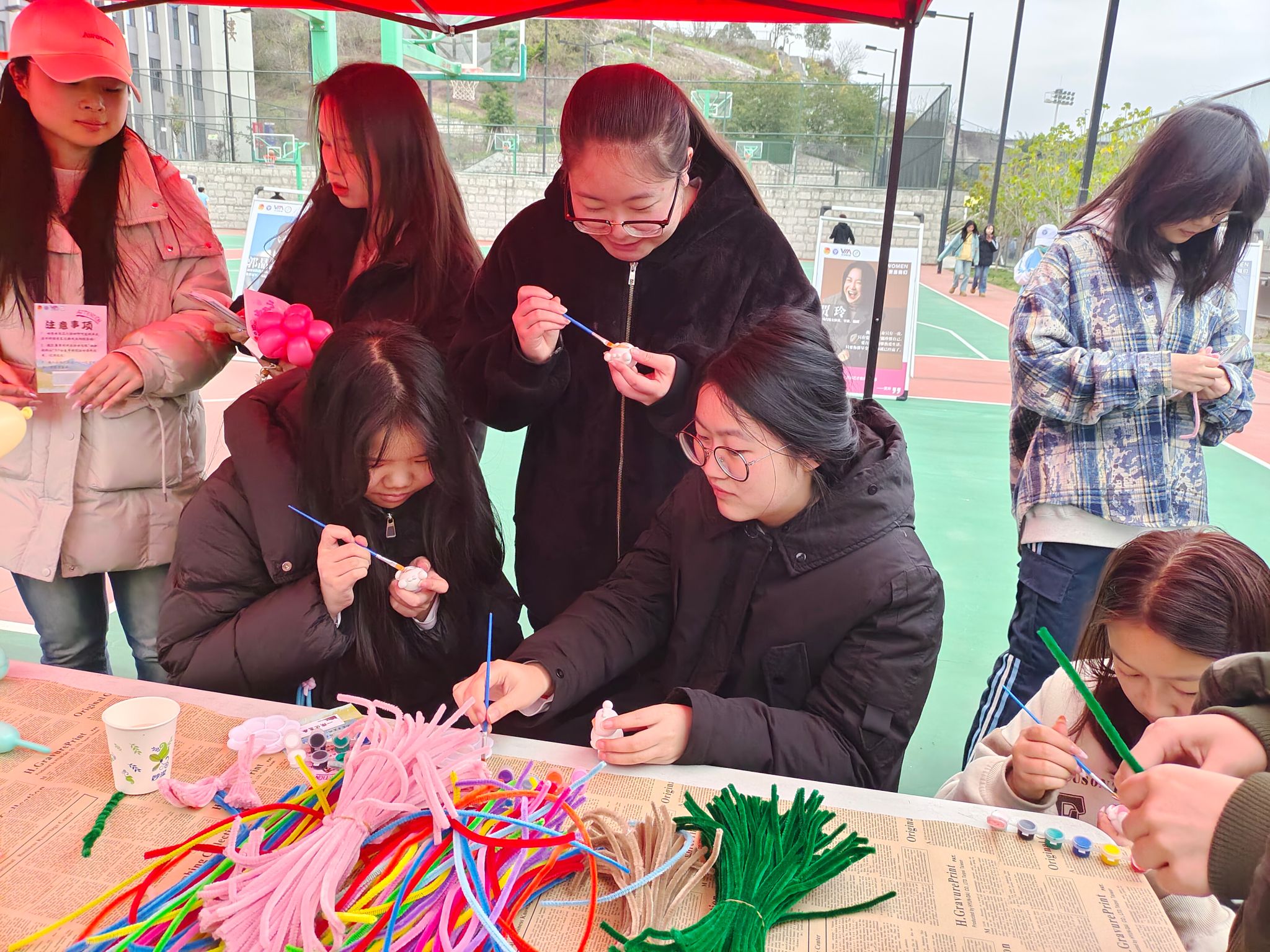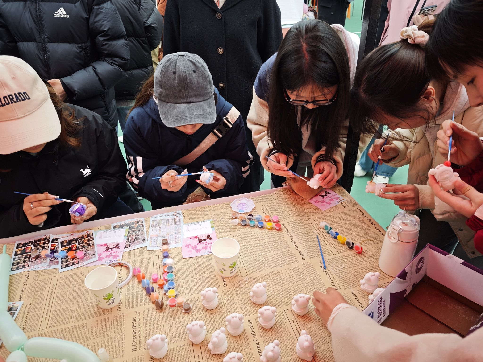 在“创意涂鸦,心灵画布”区域,涂石膏娃娃成为了女生们释放创意的绝佳载体。一个个洁白的石膏娃娃静候着她们的巧手装扮,画笔在娃娃表面轻盈跳跃,色彩斑斓的颜料渐渐填满了每一个细节。参与者们或细腻描绘,或大胆涂鸦,每一个作品都独一无二,承载着她们对美的追求和心灵的释放。在这片小小的画布上,她们找到了属于自己的艺术语言,体验着创作带来的宁静与激情。
