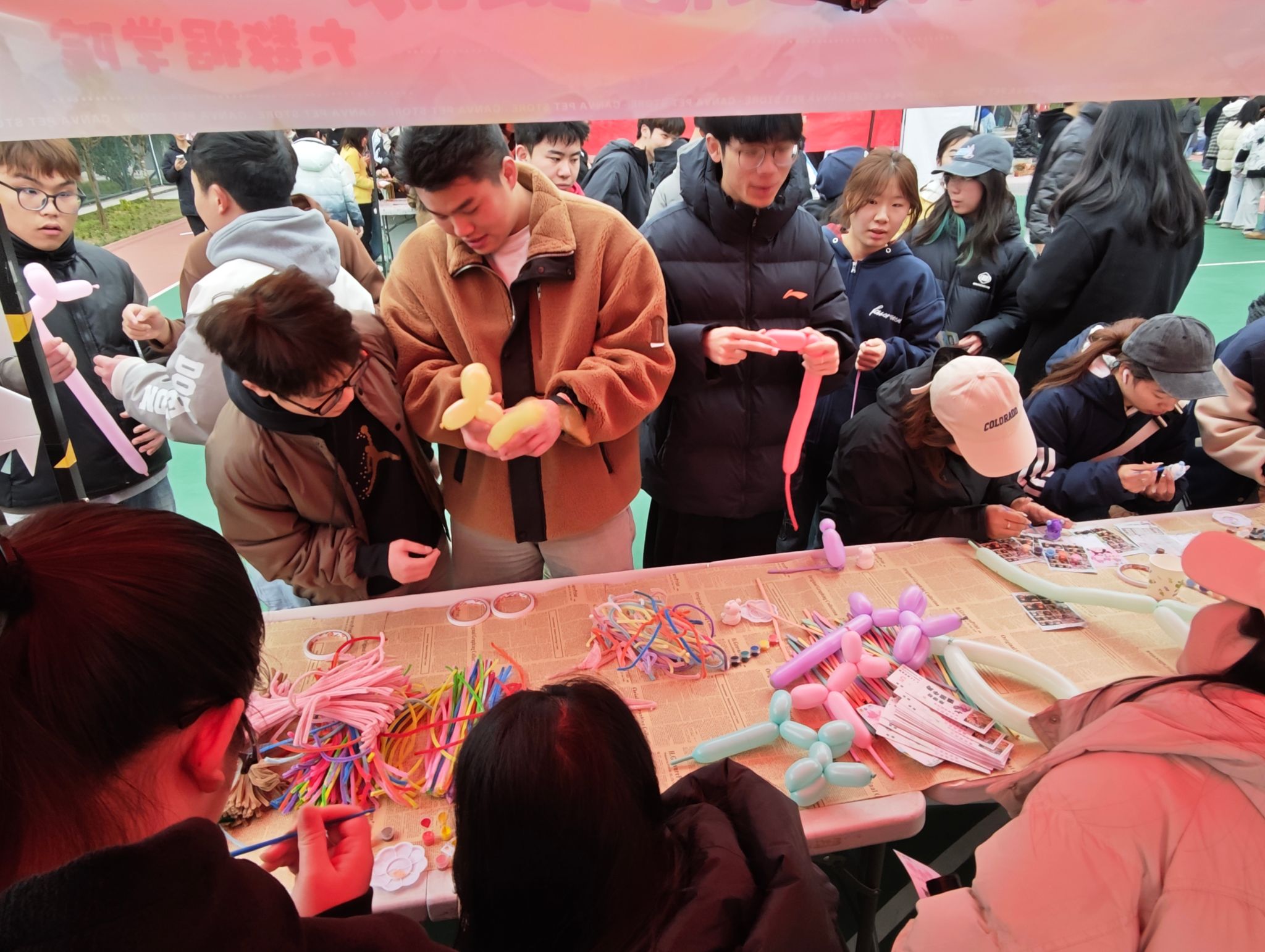 “气球编织,梦想翱翔”区,长气球在女生们的手中仿佛被赋予了生命。她们巧妙地编织着这些气球,创造出各种形状和图案,从简单的爱心到复杂的飞鸟,每一个作品都彰显着她们的巧思和创意。气球在空中飘扬,如同女生们的梦想在翱翔。在这片梦想的天空下,她们勇敢地追逐着自己的梦想,编织着属于自己的未来。