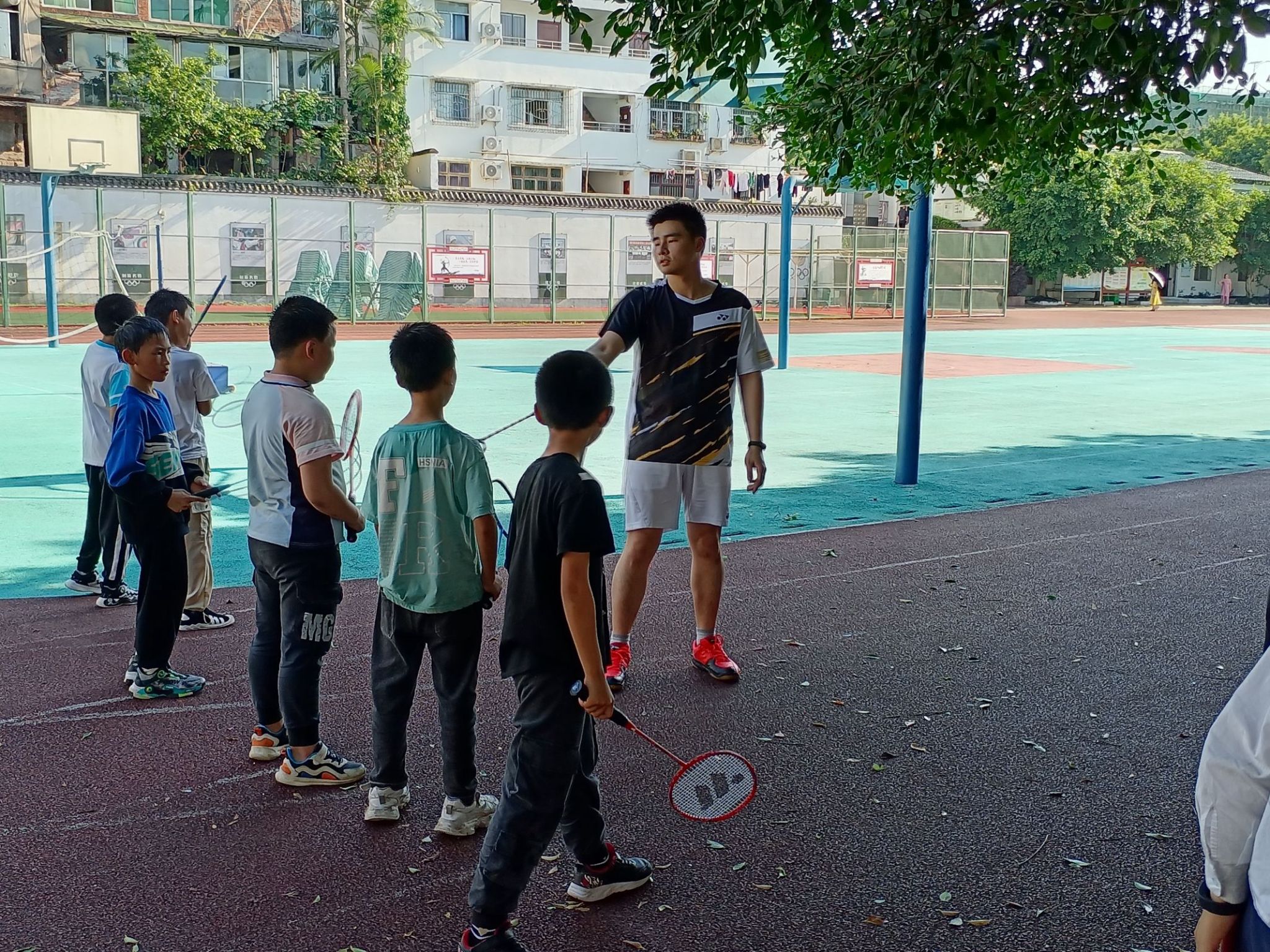“是否能用专业所长为孩子们做点实事?”校队成员看到学院发布的志愿招募通知后,得知登瀛小学缺乏专业羽毛球教练,这一念头在他心中生根发芽。常年埋头训练的队员们,虽精进球技却鲜少展现自我价值,他的倡议瞬间点燃团队热情。他们主动调整训练计划,每周抽出课余时间奔赴小学,将球场上的汗水化作课堂上的耐心指导。“术业专攻,学以致用,既是帮助孩子,也是自我成长。”队员们如是说。