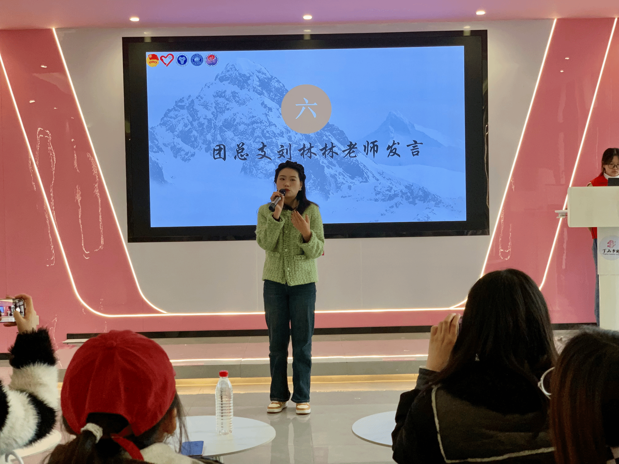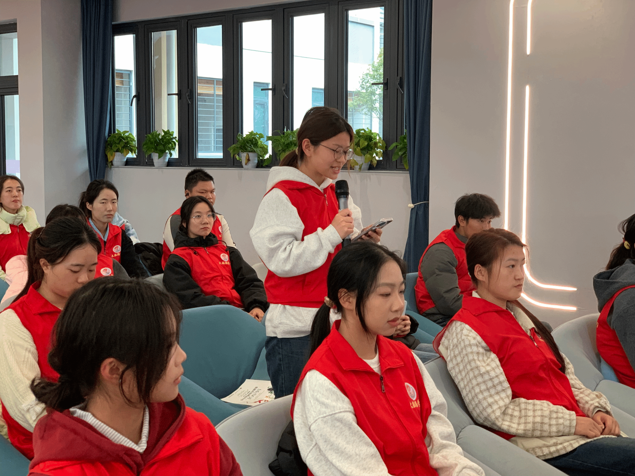 随后来到了交流环节,多名志愿者积极发言。一位同学谈到自己在家乡了解了非物质文化遗产,正是因为她们的坚持才使得这些文化得以延续与推广。还有一位同学表示,她最初对社会实践不了解,后来通过周围同学的谈论逐渐了解到社会实践的内涵,并在下次的社会实践中付诸行动,认识到应通过磨砺而出彩的道理。在她们激情的交流中,她们在心中立下了要以青春之我投身乡村振兴的伟大决心。在刘林林老师的经历分享中,她讲述了自己从一个容易害羞的女孩,通过参加社会实践活动逐渐进步,最终能够冷静分析问题的改变经历。这次大会在她的分享中逐渐接近尾声。