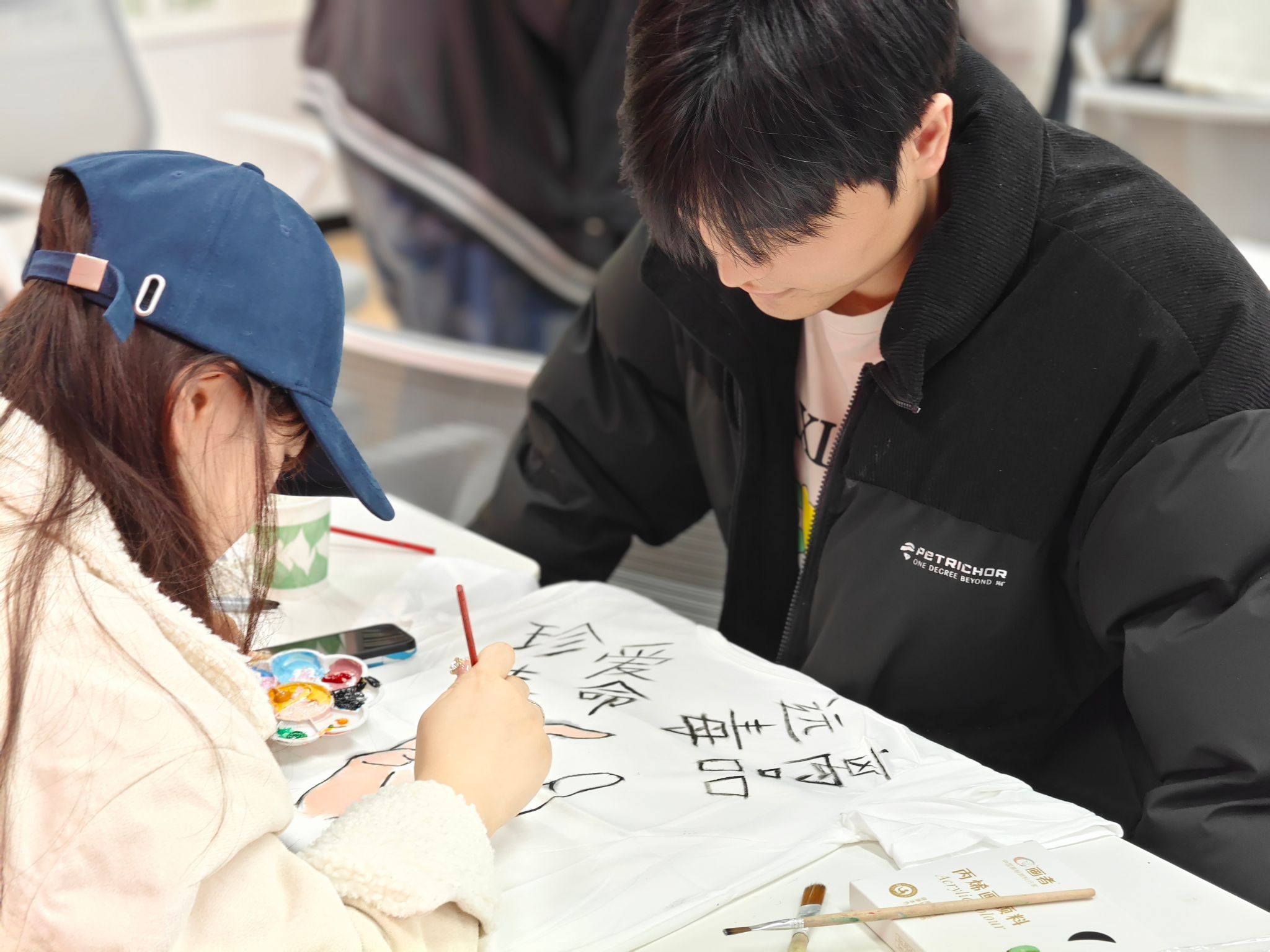 活动当天,现场氛围异常热烈。同学们怀揣着满满的创意与热情汇聚一堂,迫不及待地拿起画笔,在洁白的文化衫上细心勾勒禁毒主题图案。现场陈列的仿真毒品模型,让同学们能够直观目睹毒品的真实面貌,这不仅为他们的创作激发了灵感,也进一步加深了他们对于毒品危害性的认知。有的同学精心描绘出形象鲜明的防毒标志,有的则挥洒笔墨写下振聋发聩的禁毒标语,每个人都以画笔为媒介,传递着“健康人生,绿色无毒”的坚定信念。与此同时,工作人员在现场有条不紊地维持秩序,为同学们提供及时的颜料补给和专业的绘画指导,确保活动能够顺畅进行。而李璐同学则穿梭于人群之中,用相机捕捉下每一个精彩瞬间,将同学们的专注神情与创意成果永久定格。