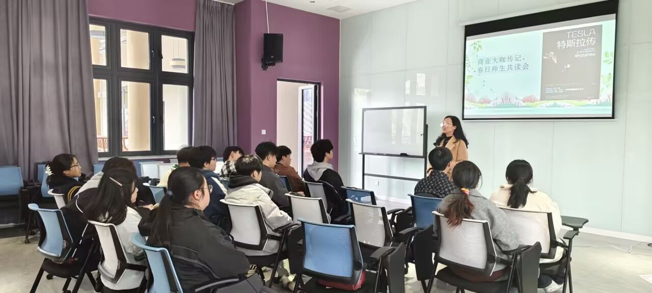 为更好践行学校全生异科导师指导工作,3月3日中午13:00,张红老师与她的2024级数字媒体技术专业专升本的同学们,在观云书院阅读书吧。开展了以“探索创新之路,共鉴商业巨擘的智慧人生”为主题的师生共读会,旨在通过共读《特斯拉传》,激发高校师生的创新思维,从商业大咖的传奇人生中汲取智慧与力量。