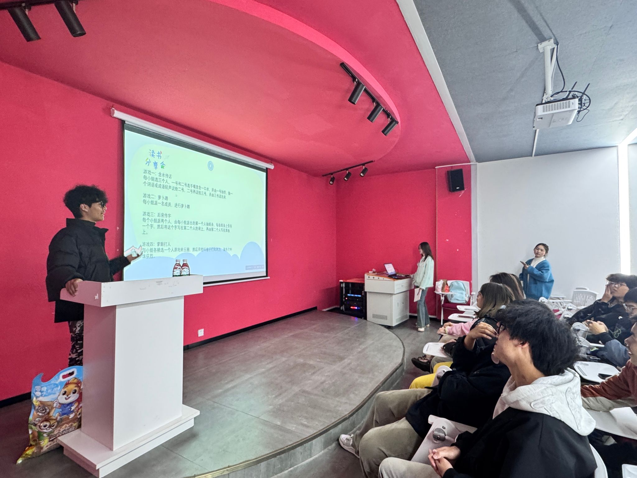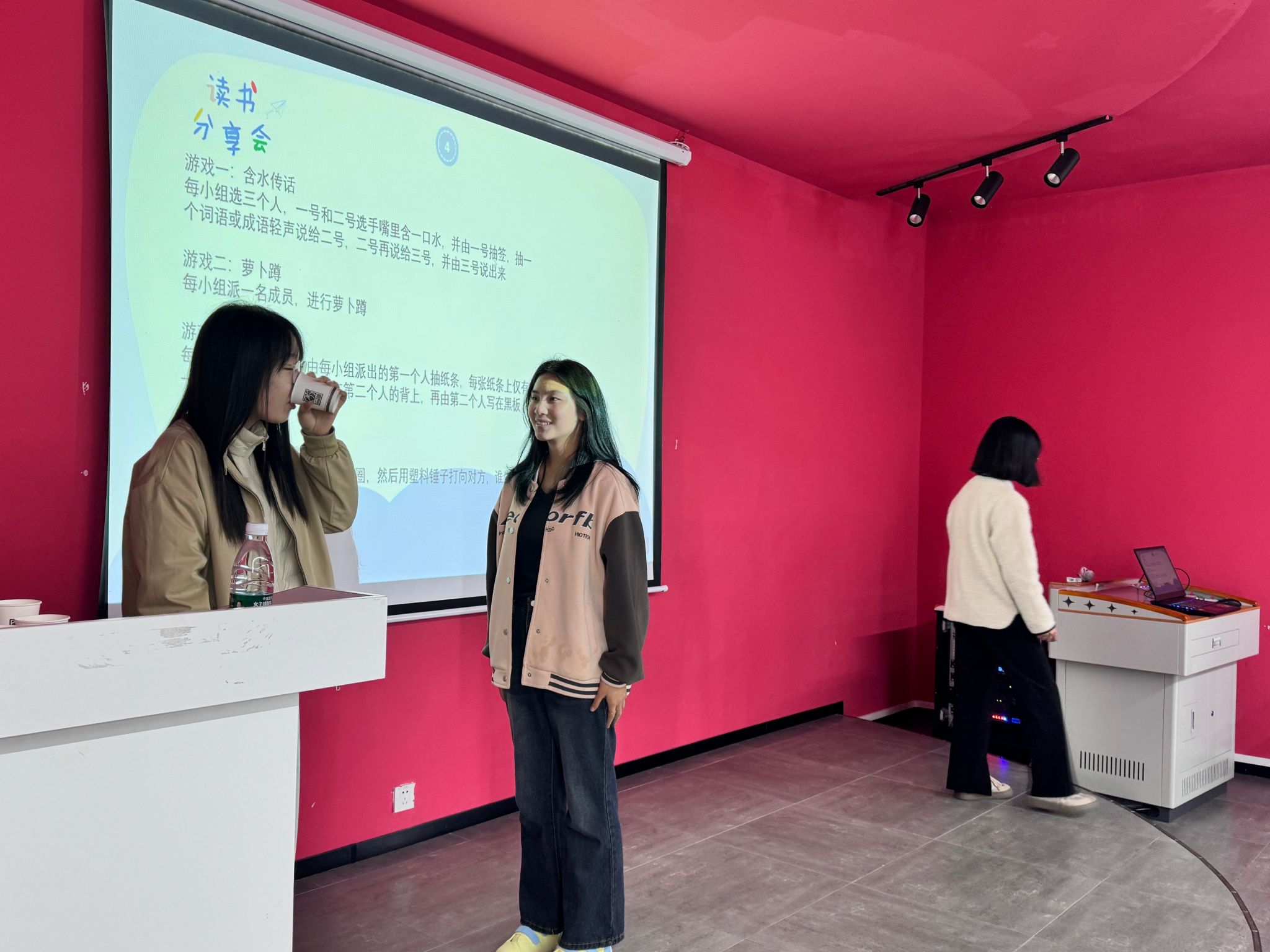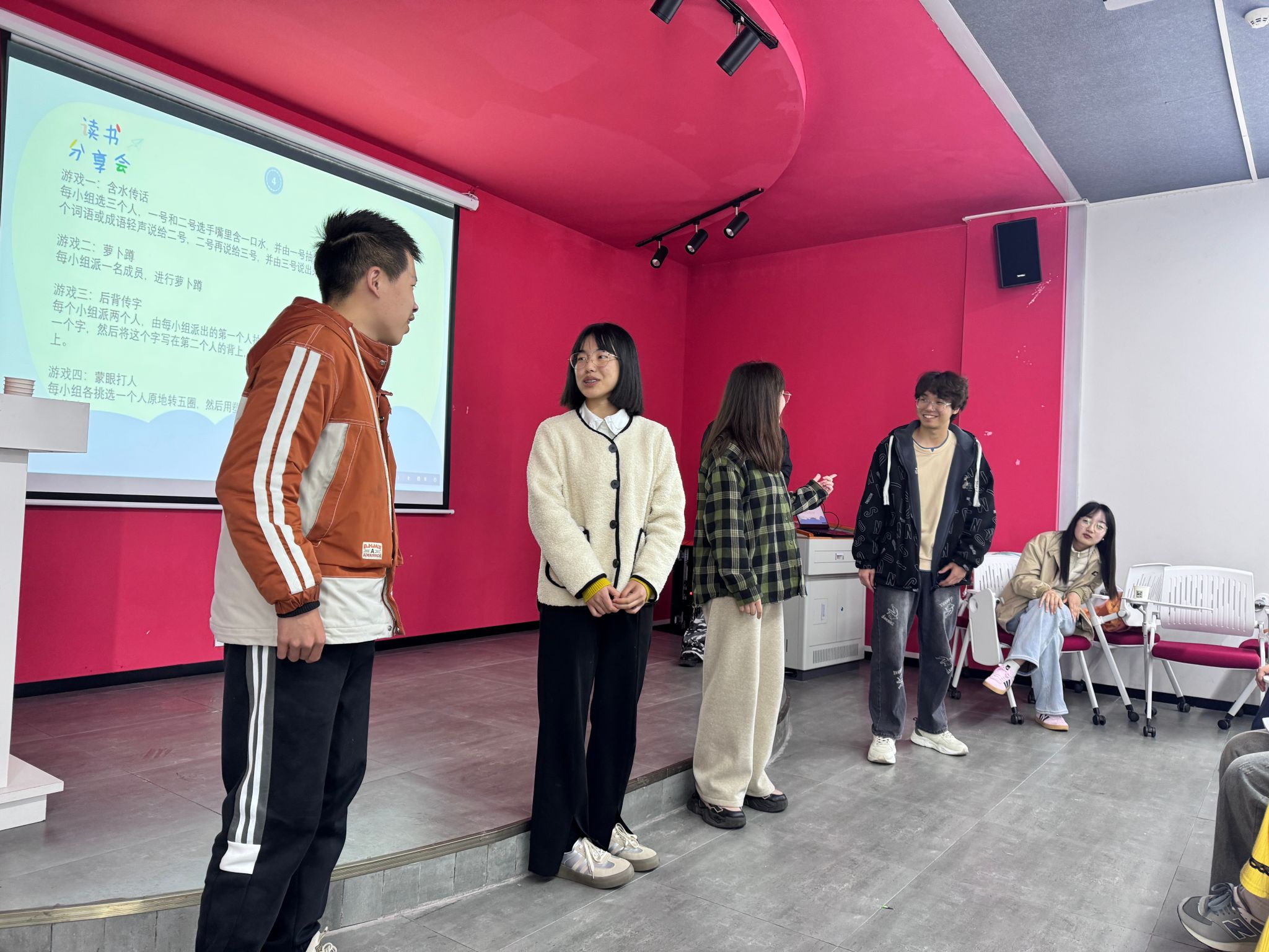 此次分享会还设置了丰富有趣的游戏环节,含水传话、萝卜蹲、后背传字、蒙眼打人等游戏,不仅活跃了现场气氛,还增强了参与者之间的互动与交流。在含水传话游戏中,参与者们因口中含水发音模糊,闹出不少笑话,引得现场笑声连连。