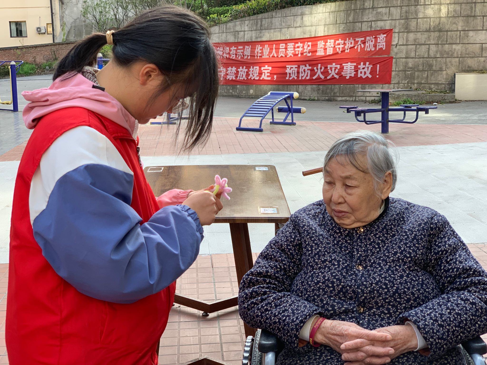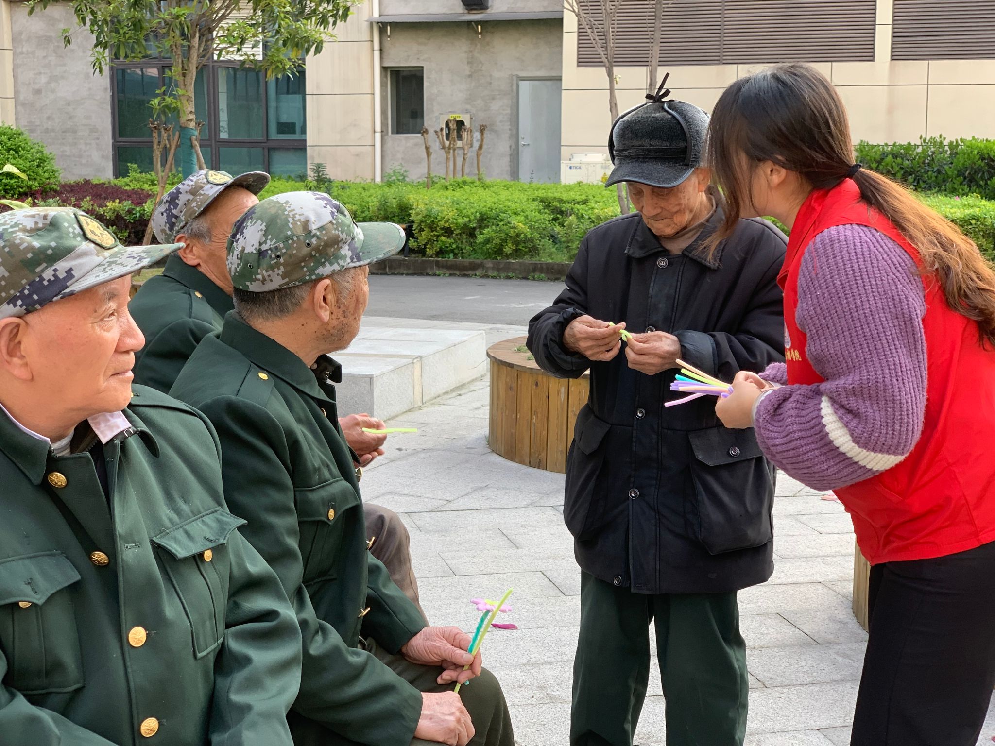 文艺表演结束后,DIY手工协会的手工互动环节随即启动。在志愿者的协助下,老人们参与扭扭棒编织与粘土制作。他们精心创作,完成了一系列创意手工作品,展现了志愿者们的巧思与热情,同时也加深了与老人们之间的情谊。活动中,志愿者们与老人们深入交流,分享故事与喜悦,营造了温馨和谐的氛围。