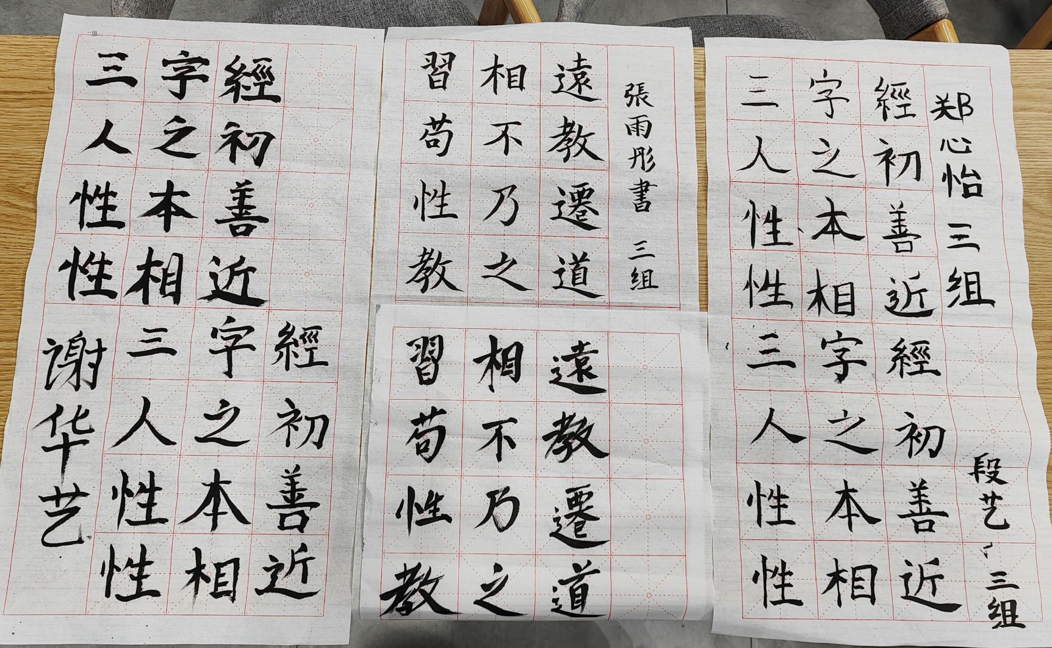 活动自启动以来,受到许多同学的关注。活动开始先由工作人员向大家简单讲解了单钩、双钩、枕腕、悬肘等握笔姿势,楷书、行书、隶书、篆书等传统书体。然后,将参与活动的同学分为了五个小组,以小组成员接力方式完成书法创作。现场还设置了书法知识竞答环节,同学们积极参与竞答,小组成员之间团结协作,现场氛围十分火热。最终评审团将从笔法、结构、章法、小组完成速度等维度综合评选,分别评出第一名、第二名、第三名。