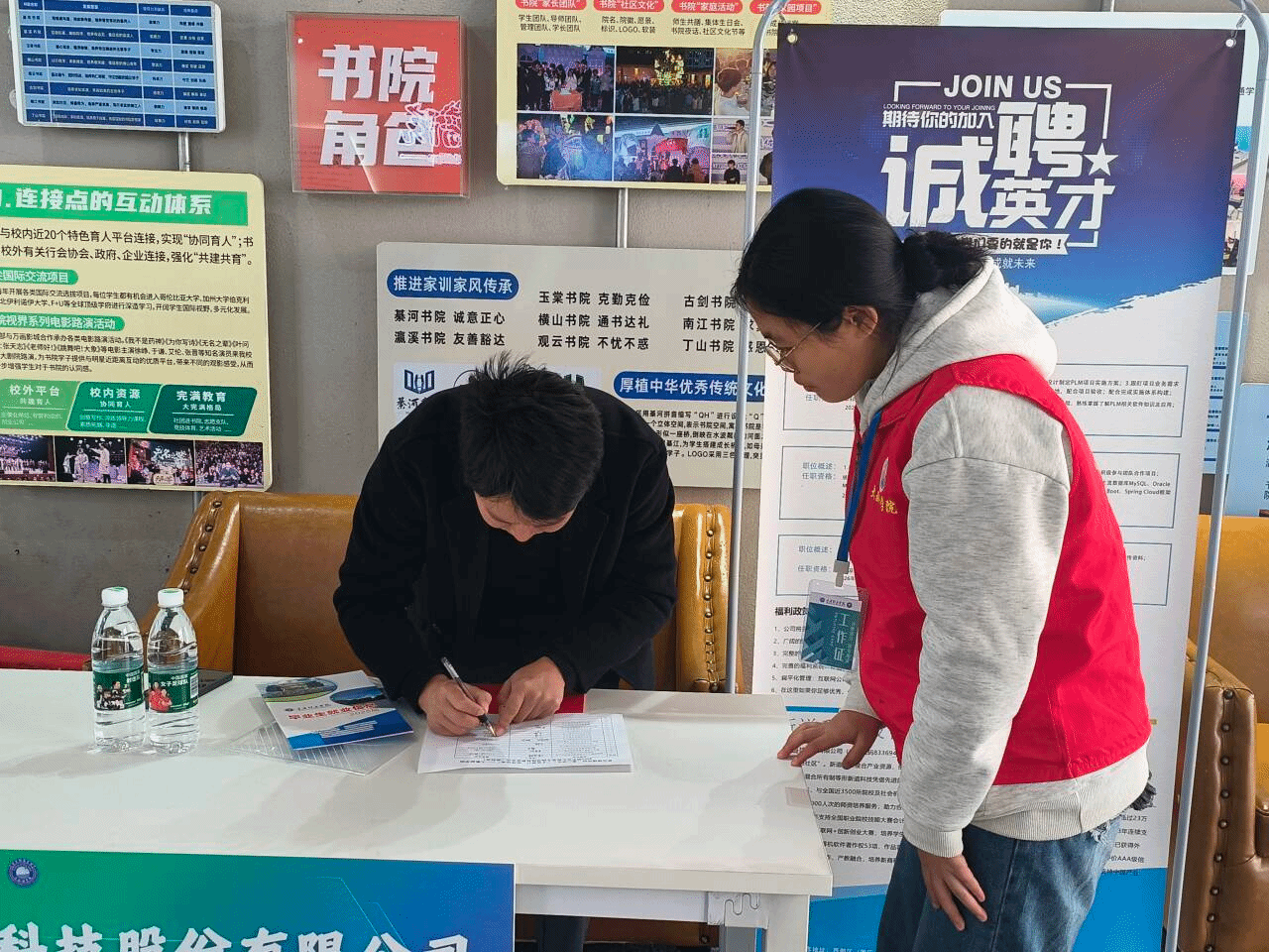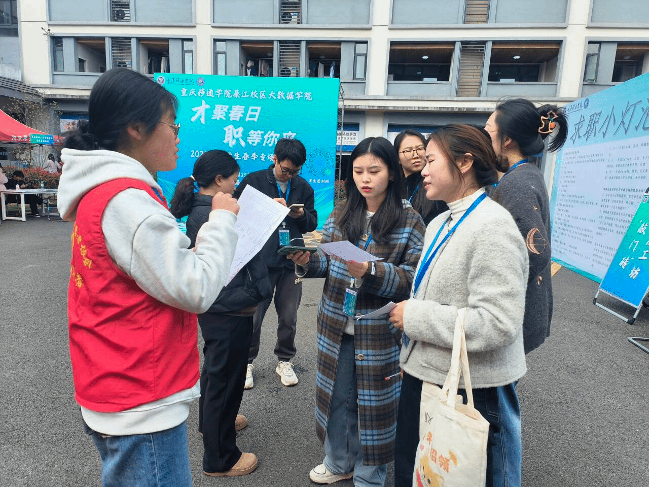 虽然双选会在10:30正式开始,但早上8点刚过,志愿者们已早早聚集在綦河书院2号楼。志愿者们分区域布置会场:摆放桌椅、设置指示路牌、关键点位安排专人值守、对应摆放企业介绍立牌等。每一个细节都体现着他们的用心与责任感。正如雷锋对待工作一丝不苟的态度,志愿者们全力以赴,为双选会的顺利开展奠定了坚实基础。他们的默默付出,不仅为活动搭建了坚实的框架,也让毕业生们感受到来自校园的温暖与支持。