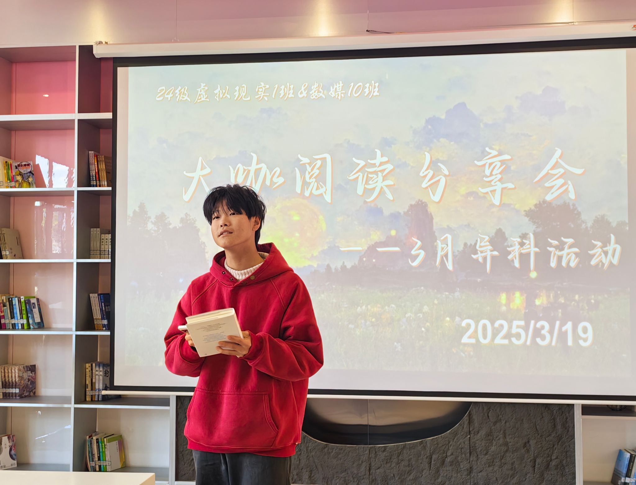3月19日16时30分,一场引发思考的大咖阅读分享会在丁山书院金牛座·书吧展开。此次分享会由2024级虚拟现实技术1班和数字媒体技术10班的异科导师肖琳老师精心组织,26名同学积极参与,一起探讨了对世界级大咖的深刻理解和感悟。