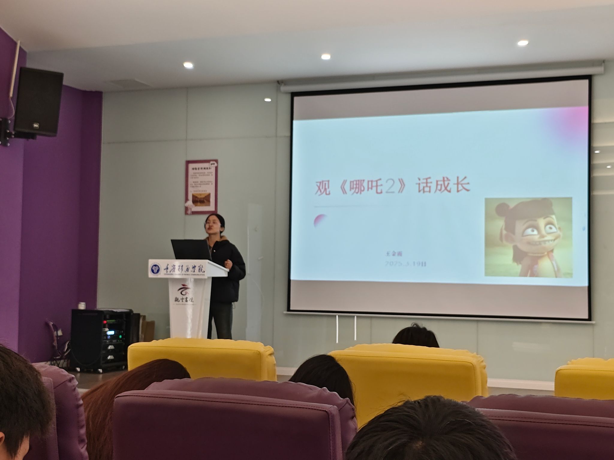 2025年3月19日,王金霞老师在观云书院秋分多功能活动室和2024级数字媒体与技术3、4班的同学,畅谈《哪吒2》观后感,引导学生们深入思考成长与自我超越的主题。
