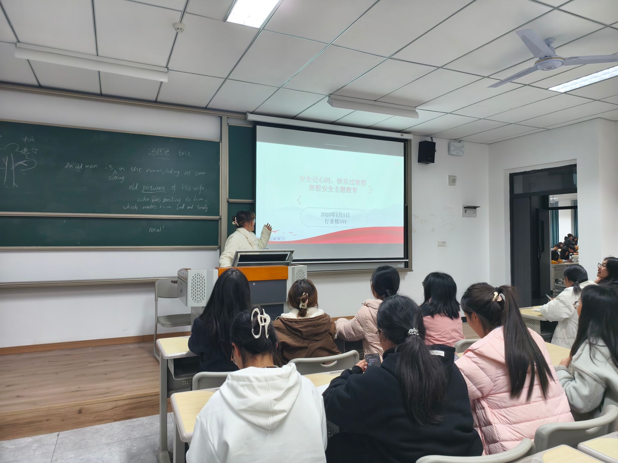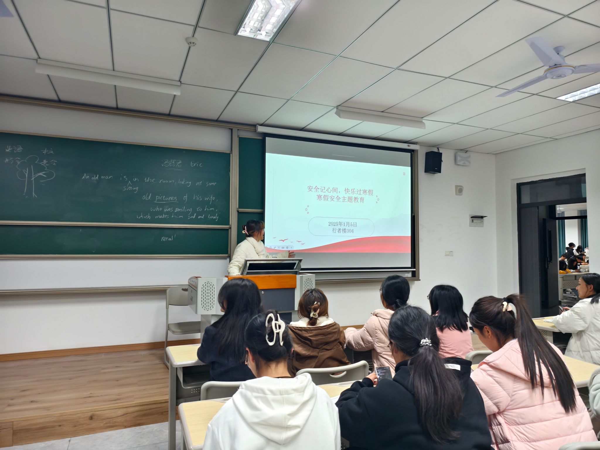 寒假将至,为增强大学生安全防范意识,筑牢假期安全防线,1月5日,大数据学院2024级数科5-6班异科班级同学在行者楼304教室开展了"安全记心间,快乐过寒假"的主题教育活动。通过老师讲授、同学分享等多元形式,为即将踏上归途的学子们送上冬日安全"防护伞"。