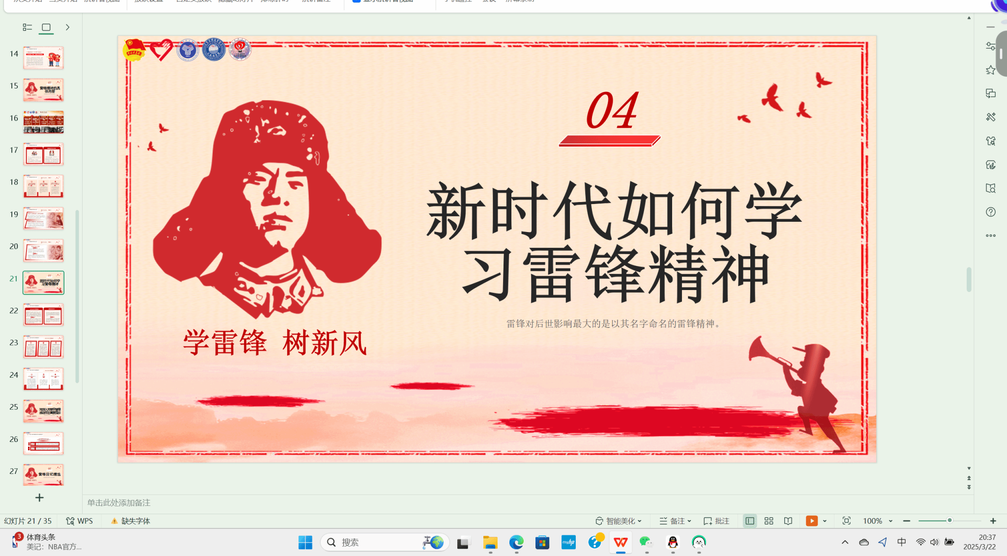 2025年3月5日至2025年3月29日,重庆移通学院的志愿者们通过线上平台云端授课,为小朋友们带来了一堂意义非凡的雷锋精神学习课堂。在这个特殊的课堂上,志愿者们跨越了空间的限制,让雷锋精神的火种在青年与少年之间传递,温暖和力量在虚拟的教室中弥漫开来。