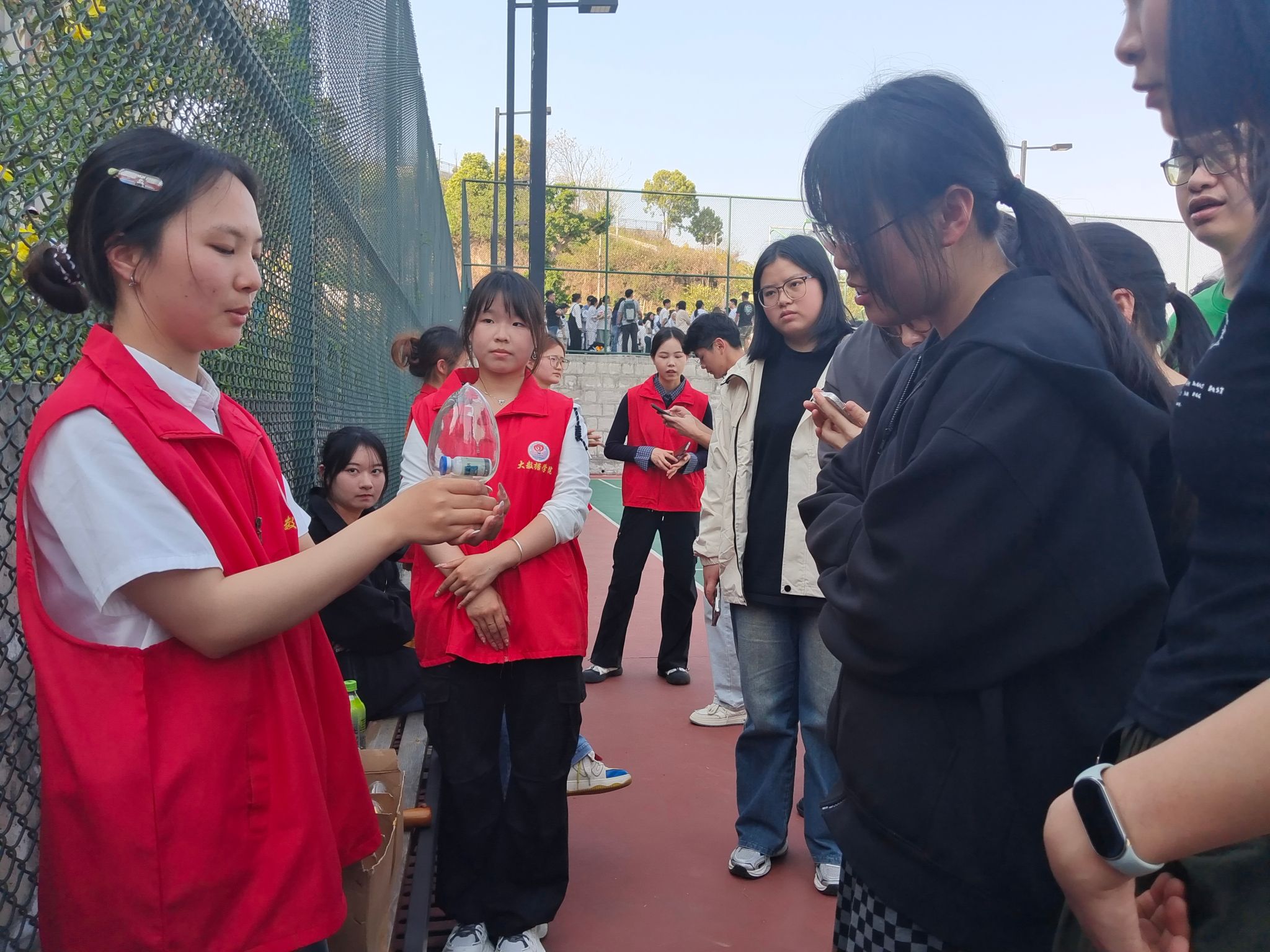 赛道上精心设置的4个关卡各具魅力。首关“禁毒知识问答”:工作人员抛出的一道道禁毒知识题,如同探秘的钥匙,考验着同学们的知识储备,只有回答正确的参与者才能解锁下一关卡,实现同学们在运动的同时,收获实用的禁毒知识。第二关“投壶竞技”:参与者手持箭矢全神贯注,在八次机会中努力投中三次即可通关,在这项传统游戏里大家感受到运动乐趣的同时,也舒缓了紧张情绪。第三关“毽子飞扬”:要求参与者连续踢八个毽子才可完成任务,五彩的毽子在同学们的脚尖灵动跳跃,尽显青春活力与运动技巧。马上来到最后一关“毒品辨真”:面对仿真毒品,同学们仔细端详、认真分辨,成功识别三种仿真毒品方能闯关成功,此项挑战极大地提升了同学们对毒品的辨别能力。