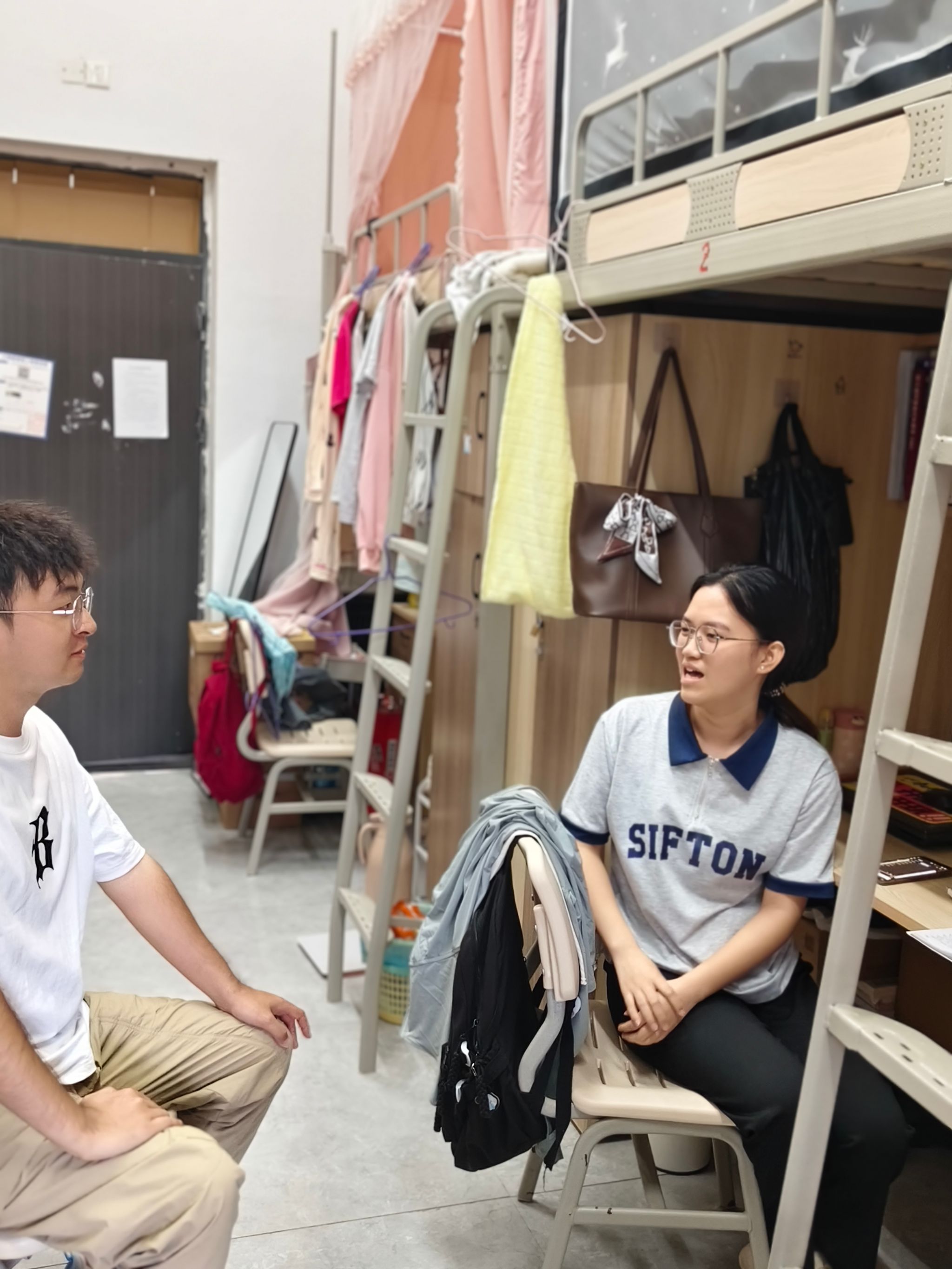 此外,郭老师还积极参与寝室走访工作,深入了解学生的日常生活状况。他关心学生的居住环境、作息规律以及日常所需,对于发现的问题及时给予帮助和支持,展现了作为一名导师应有的细心与爱心。