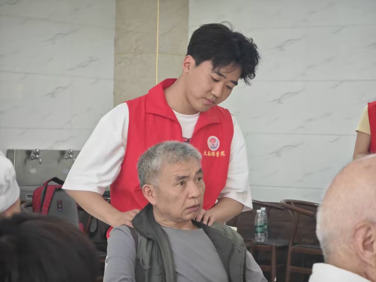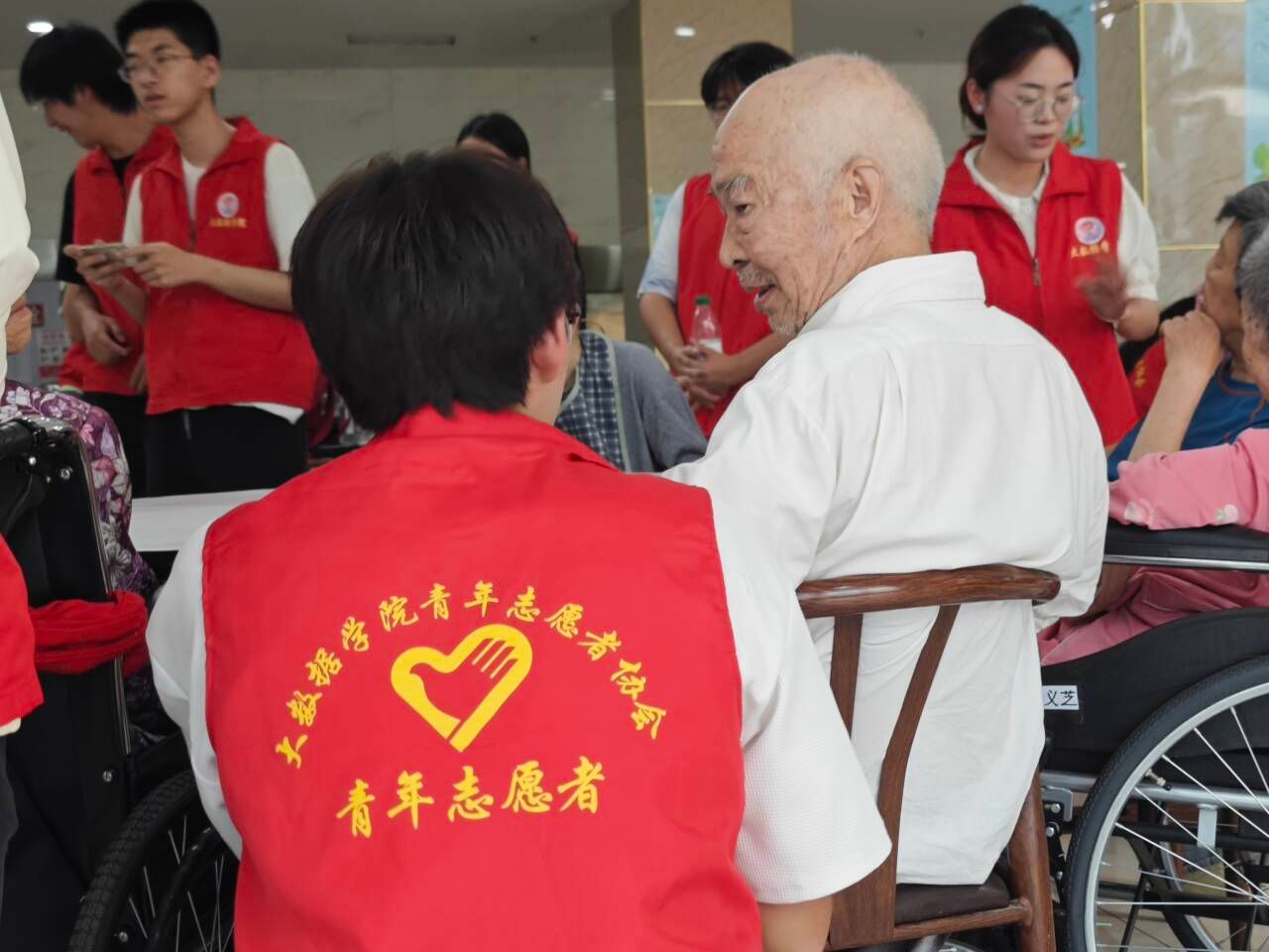 志愿者们分组走进老人们的生活区,以“多对一”形式与老人亲切交流。志愿者们躬身倾听老人讲述峥嵘岁月与生活点滴,从抗战往事到家庭温情,言语间架起代际沟通的桥梁。志愿者们同步为老人们提供肩颈按摩服务,缓解身体疲劳。活动现场,96岁的周奶奶轻拍志愿者的手背感慨:“这些娃娃就像自家孙辈一样贴心!”
