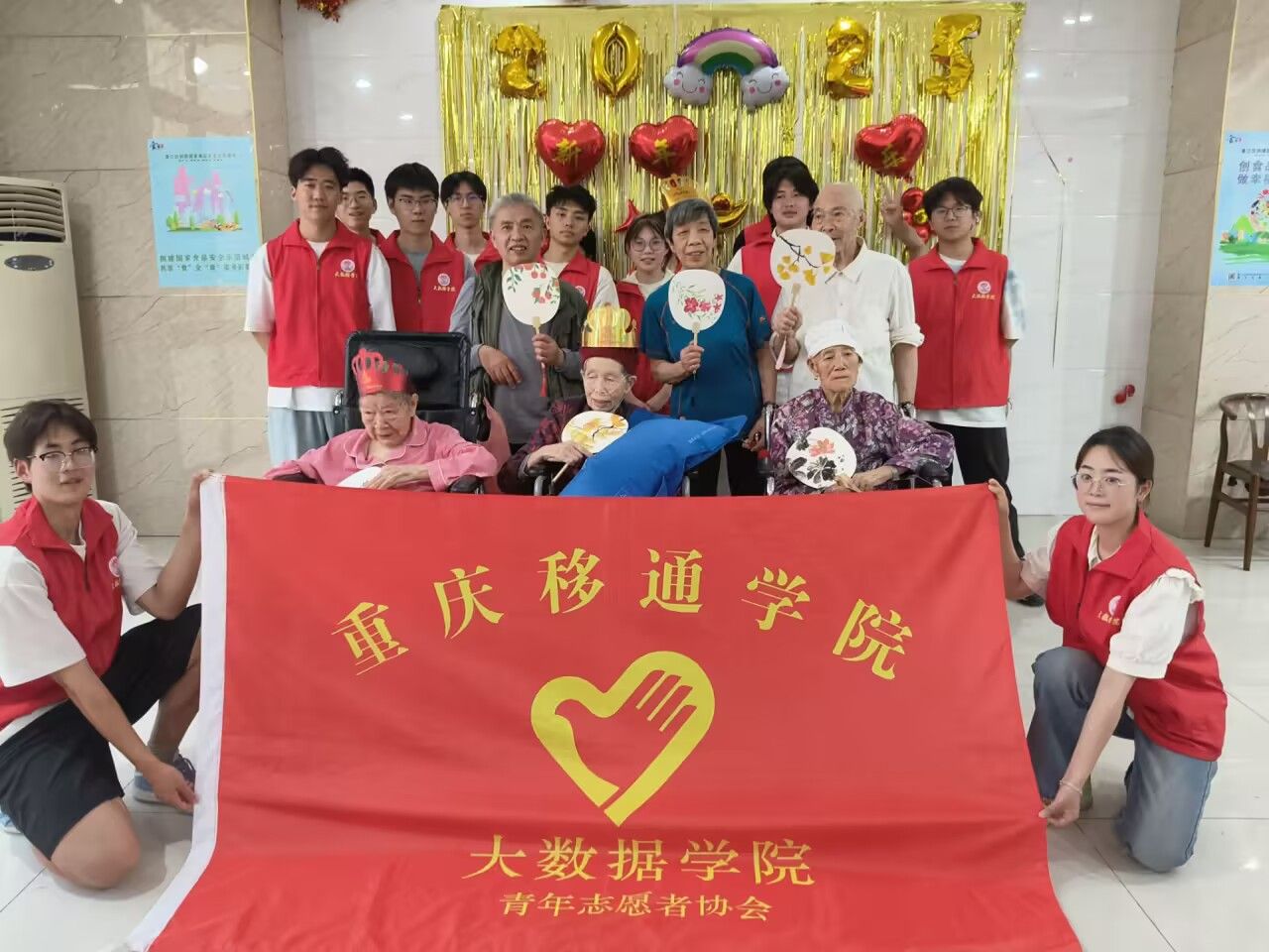 2025年4月20日,大数据学院青年志愿者协会和青花墨字书画社携手2022级虚拟现实技术3班、2023级数字媒体技术8班、2024级专升本数字媒体技术3班的志愿者们在心新养老院温暖举行了“心新相伴,暮岁同欢”关爱老人志愿活动。志愿者们携手为高龄老人提供暖心陪伴以及生日庆贺与文艺表演,用行动践行敬老爱老的传统美德,传递社会温情。
