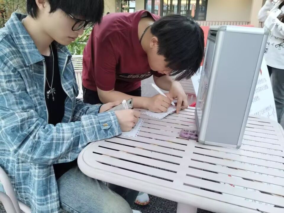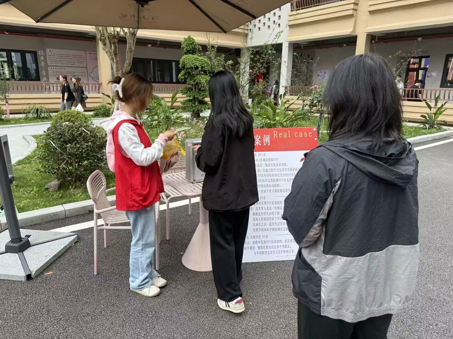 活动期间,丁山书院中庭的“勇气邮箱”成为一道温暖且靓丽的风景线。参与者可免费领取明信片,自行选择撰写内容,或是面向青少年分享防艾科普感悟,或是为艾滋病感染者送上鼓励话语。每当投入一封承载着温暖与力量的明信片,便能换取一颗象征甜蜜关怀的糖果。这一充满巧思的设计,巧妙地在理性科普与感性联结之间架起桥梁,不仅有效化解了话题的沉重感,还以零门槛的形式与青年产生共鸣,吸引他们积极参与其中。