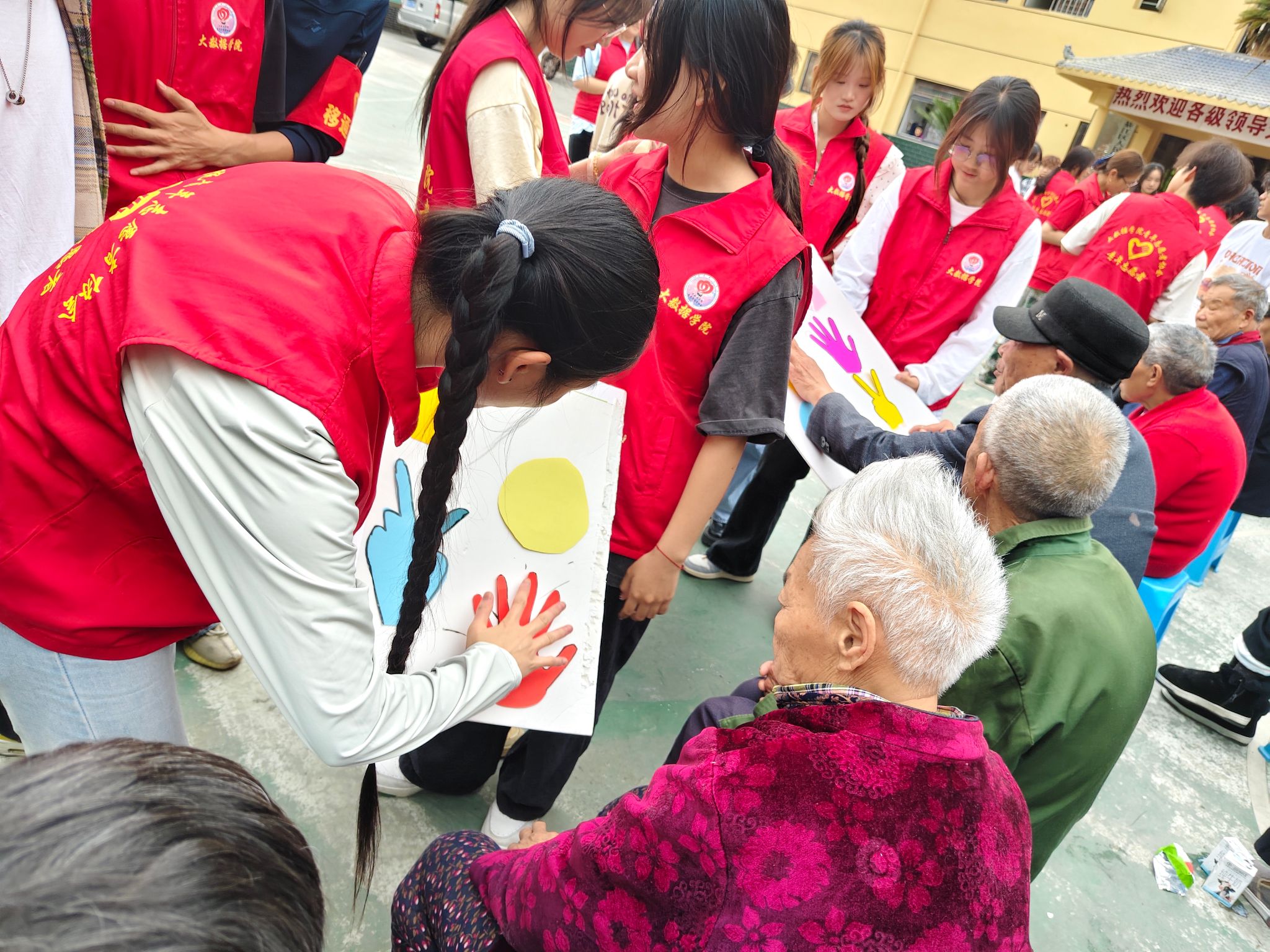 踏入三江养老院,老人们热情地迎接同学们的到来。稍作休整后,精彩的文艺表演拉开帷幕。志愿者们带来的歌曲《多幸运》,温柔的歌声如潺潺溪流,诉说着相遇的美好;《超级英雄》则以激昂的旋律,点燃现场气氛,仿佛让老人们看到了青春的无限活力。而充满力量与创意的《poping机械舞》,更是引得老人们连连称赞,掌声此起彼伏。随后,《反应拍拍拍》游戏将活动推向高潮。志愿者与老人们两两一组,随着口令快速反应,拍打指定物品。大家全神贯注,时而欢笑,时而惊呼,整个养老院充满了欢声笑语。老人们脸上洋溢着灿烂的笑容,与志愿者们度过了一段欢乐难忘的时光。