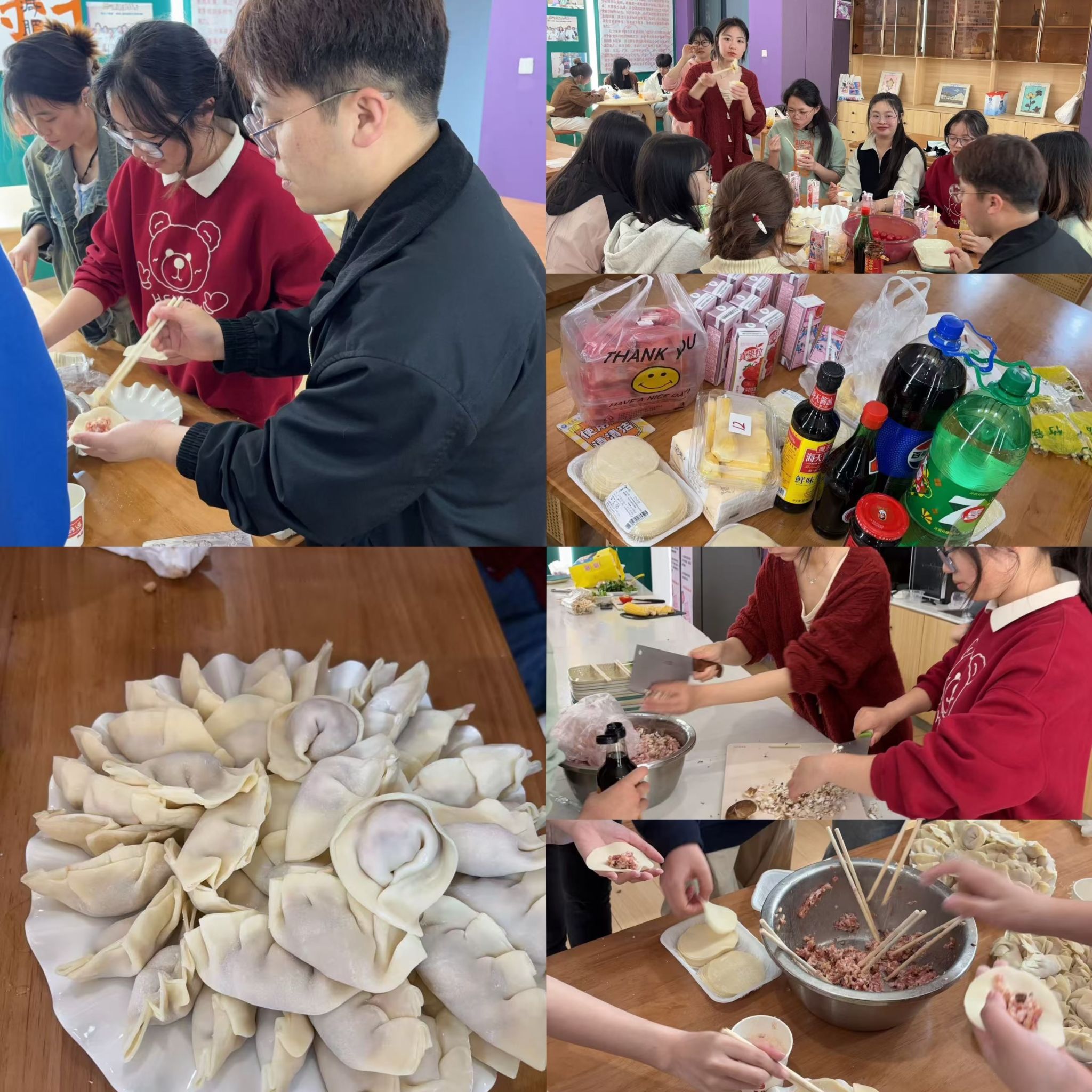 活动中,还为异科生们准备了丰富的馅料和调料及其饮料和小吃,确保饺子的口味多样,以满足大多数学生的口味。大家一边包饺子,一边交流着学习及生活中的趣事,分享着彼此的经验和心得,增进了学生之间的感情,更是拉近了老师与学生之间的距离。