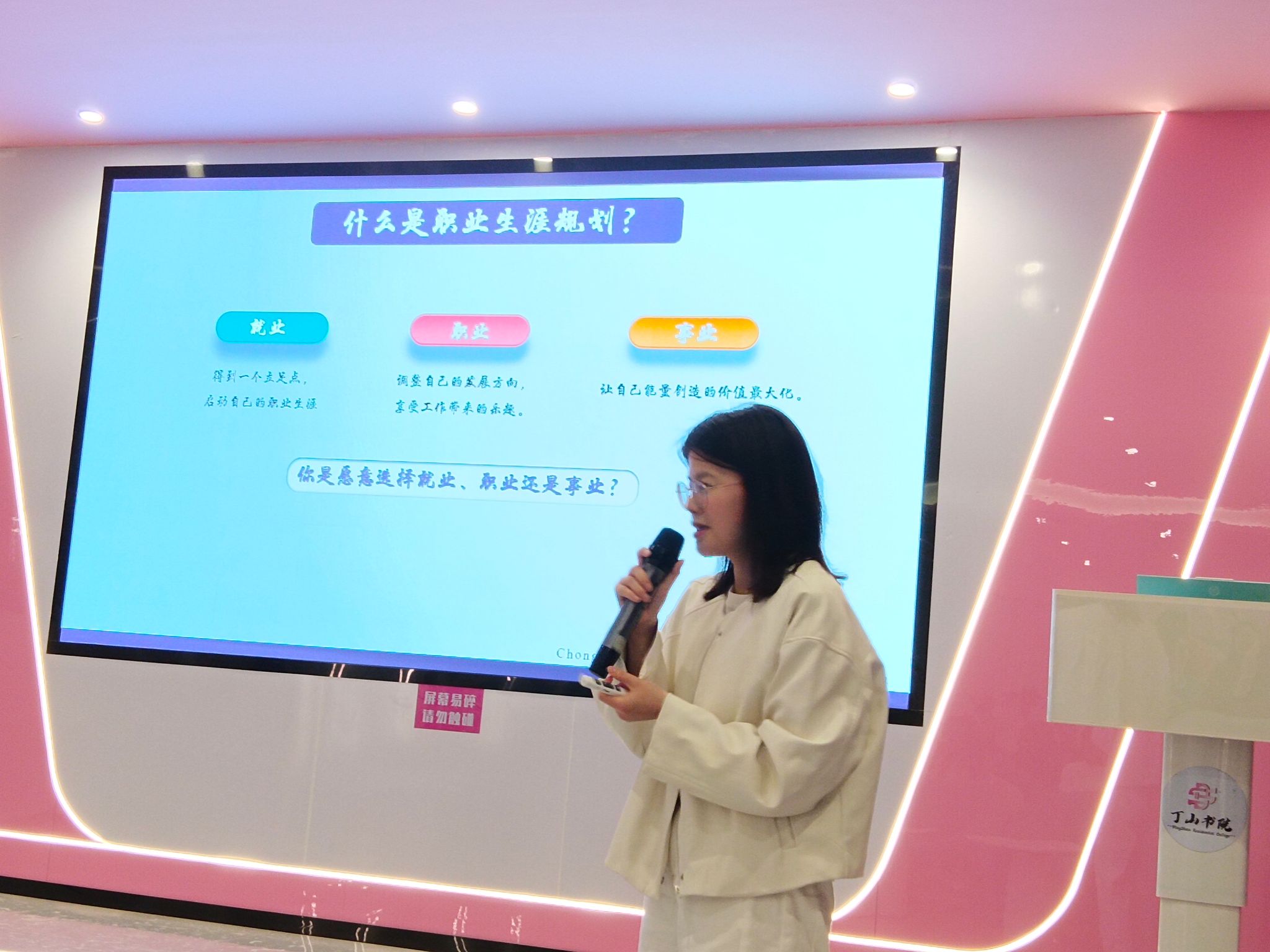 活动伊始,肖琳老师以“职业生涯规划那件‘大’‘小’事儿”为主题,巧妙抛出“大”事or“小”事这一引人深思的问题,引发了同学们的深度思考。她指出,有的同学在大一的时候会认为职业生涯规划是一件“小”事,但等到了大四就会发现职业生涯规划的重要性,发现这是一件“大”事。肖老师通过新颖的视角,引用实际案例,引导同学们明白职业生涯规划的重大作用。